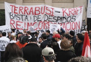 Finalmente la patronal de Kraft-Terrabusi acató la conciliación obligatoria dictada por el ministerio de Trabajo, con los 160 despedidos reincorporados. Es un primer golpe que los trabajadores le dieron a la multinacional yanqui, que trata de descabezar a la interna y al activismo. Hace cerca de tres años, Terrabusi fue vendida a una multinacional yanqui: Kraft. Es la fábrica del sindicato de Alimentación (STIA) más grande del país, con cerca de 4.000 obreros. Al sindicato lo dirige Daer, de los Gordos, quien fuera secretario general de la CGT antes de Moyano. El principal dirigente de la interna, desde hace años, es Ramón Bogado, opositor a Daer. La patronal hace rato que quiere echarlo. Tiene varios juicios. Ante una medida de fuerza, la patronal despidió a 162 trabajadores, entre ellos la mitad de la Interna y de la directiva de STIA. La respuesta fue un paro contundente de los tres turnos, cortes masivos en la Panamericana y mucha solidaridad obrera. Se le reclamó a Daer un paro total de la Alimentación y un paro nacional a la CGT. Daer fue a la puerta de la fábrica y en asamblea dijo que si este lunes Kraft no acataba la conciliación se iba al paro. Y Moyano dijo que no entraría ni saldría un sólo camión de la planta. Así se quebró la intransigencia patronal. El lunes 24, unos 300 trabajadores se movilizaron desde la planta ubicada en Pacheco hacia el ministerio de Trabajo. Afuera del ministerio se escuchaban los bombos y los cánticos; adentro estaban los representantes de los trabajadores reunidos con la patronal y el gobierno. Entrevistamos a Marta, delegada de la Comisión Interna, y a Leandro, obrero que estuvo adentro durante los días de paro. ¿Cómo se inició el conflicto? M: El conflicto fue un reclamo por higiene y sanidad. A partir de tener un caso de Gripe A en la fábrica, la empresa cierra el jardín maternal que funciona en la planta. Entonces le pedimos a la empresa los días para las mamás, cosa que negaron rotundamente. ¿Qué pretende la patronal con los 160 despidos? M: Pretende disolver una Comisión Interna que defiende los derechos de los trabajadores y es oposición a la dirección del sindicato de Alimentación. Y, junto a ella, a decenas de compañeros que están al frente de los reclamos. ¿Cómo se organizaron para la lucha? M: Primero organizamos un paro en la planta y detuvimos la producción. Logramos que el ministerio declare la conciliación con todos adentro, pero la empresa no la acató. Entonces nos vimos obligados a quedarnos en la fábrica, con la planta totalmente parada. Y cortamos Panamericana varias veces. Con la amenaza de extender el conflicto a toda la Alimentación, la patronal tuvo que retroceder. L: Esto es un gran logro que puede darnos la suficiente confianza en que, con la participación y la lucha entre todos los compañeros, se puede torcerle el brazo a esta patronal yanqui. El final está abierto, habrá que ver qué sucede después de estos 20 días de conciliación, pero lo que sí sabemos es que no debemos perder la organización que venimos dándonos. ¿Cómo fue el paro adentro? L: Durante estos días, dentro de la planta comprendimos la importancia de conservar el trabajo y no aceptar la indemnización, como se hizo en el 2001. A pesar del temor, entendimos que la mejor forma es estar todos unidos. Por eso, al terminar nuestro horario de trabajo, somos parte de los cortes y de las acciones que realizaron los compañeros. Había que apretar al sindicato y a la CGT, aunque muchos pensamos que no nos representa, para mantener la unidad. Y también exigir al gobierno que se respete a los trabajadores, no a la multinacional yanqui. La solidaridad de afuera nos dio una fuerza bárbara. Creo que seguir ese camino es la garantía para ganar. Entrevistaron Eduardo Manzione y Juan Borges |