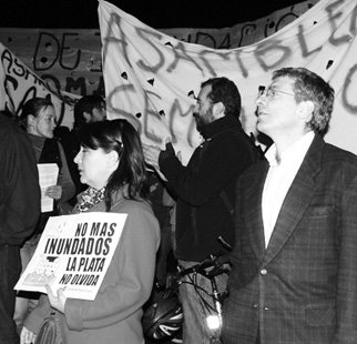 Se llevó a cabo el pasado lunes 2 con centenares de asambleas y organizaciones. Se encontraba presente María Luján Rey, madre del joven Menghini, muerto en la masacre ferroviaria de Once. Nuestro candidato Juan Carlos Giordano e Izquierda Socialista acompañaron (foto). La marcha caminó al grito de “Cristina, ladrona, La Plata no perdona” y “atención, atención, saquemos a estos chorros en la próxima elección”. Los familiares habían sido recibidos la semana anterior por Scioli y Bruera, sin ninguna respuesta. En un documento acusan a Bruera de homicidio, estrago doloso y abandono de persona. Juicio y castigo a todos los responsables. Y reclaman suspensión del pago de impuestos, subsidios por todas las pérdidas, ejecución de las obras hidráulicas, impuestos a los especuladores inmobiliarios, derogación del Código de Ordenamiento Urbano y relocalizar las 130 villas precarias. |