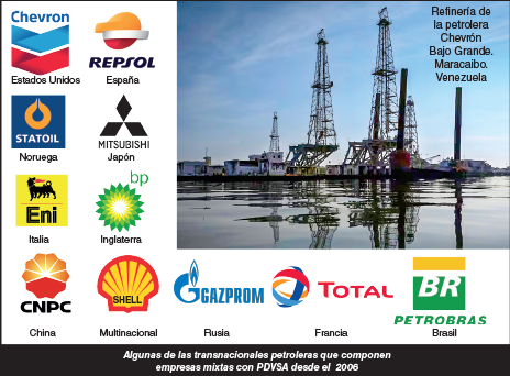 Es importante recordar que las empresas transnacionales nunca se fueron de Venezuela. En el año 2007 Chávez asoció a las transnacionales petroleras a Pdvsa a través de la figura de las empresas mixtas. En ese acuerdo entraron Chevron, Repsol, Shell, Total, China National Petroleum, Petrobras, luego ingresarían al esquema Mitsubishi, Lukoil, Gazprom y Rosneft. Las únicas empresas que no entraron en el acurdo de empresas mixtas fueron Exxon Mobil y Conoco Phillips, porque decidieron irse. En el 2010 Chávez otorgó a las transnacionales varios bloques de la Faja Petrolífera del Orinoco, la reserva de crudo más grande del mundo, profundizando así la entrega de nuestro petróleo.