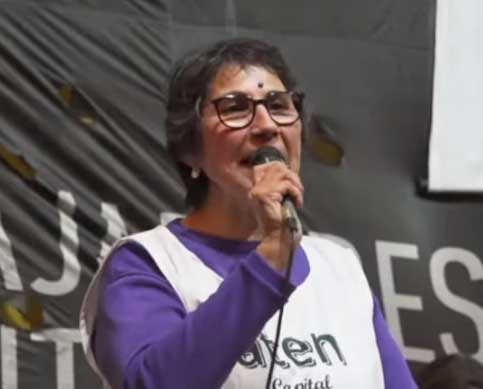 También estuvieron la secretaria general de ATEN Capital (docentes de Neuquén) Angélica Lagunas; la secretaria general de Ademys (docentes de CABA) Mariana Scayola; la secretaria general del SAE (docentes de La Rioja) Carolina Goycochea; el delegado general de la comisión interna de ATE Ministerio de Economía Pablo Almeida y Ana Valverde de Unión de Trabajadores Jubilados en Lucha (Utjel). Todas y todos ellos de la corriente sindical “A Luchar”.