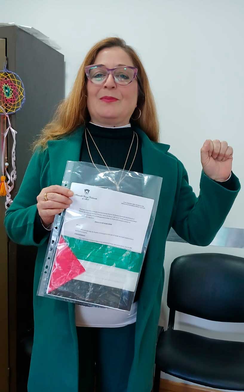 Dijo Romina Ruocco: “Proponemos que se repudie en el recinto del Concejo Deliberante de Merlo los criminales bombardeos del Estado Israel sobre el pueblo palestino en la franja de Gaza. En los últimos 19 meses, con la nueva invasión de Israel en Gaza fueron asesinadas más de 61.700 palestinas y palestinos, el 70% mujeres y niños. La heroica resistencia del pueblo palestino impidió que Israel pueda dominar completamente la Franja y expulsar a los dos millones de palestinos que viven allí. Llamamos a repudiar su política de limpieza étnica en las calles, en cada parlamento o lugar donde podamos. Los pueblos del mundo se solidarizan con el heroico pueblo palestino que resiste al apartheid. Somos parte de ese gran movimiento que repudia el genocidio y que proclama 'Palestina libre del río al mar'".