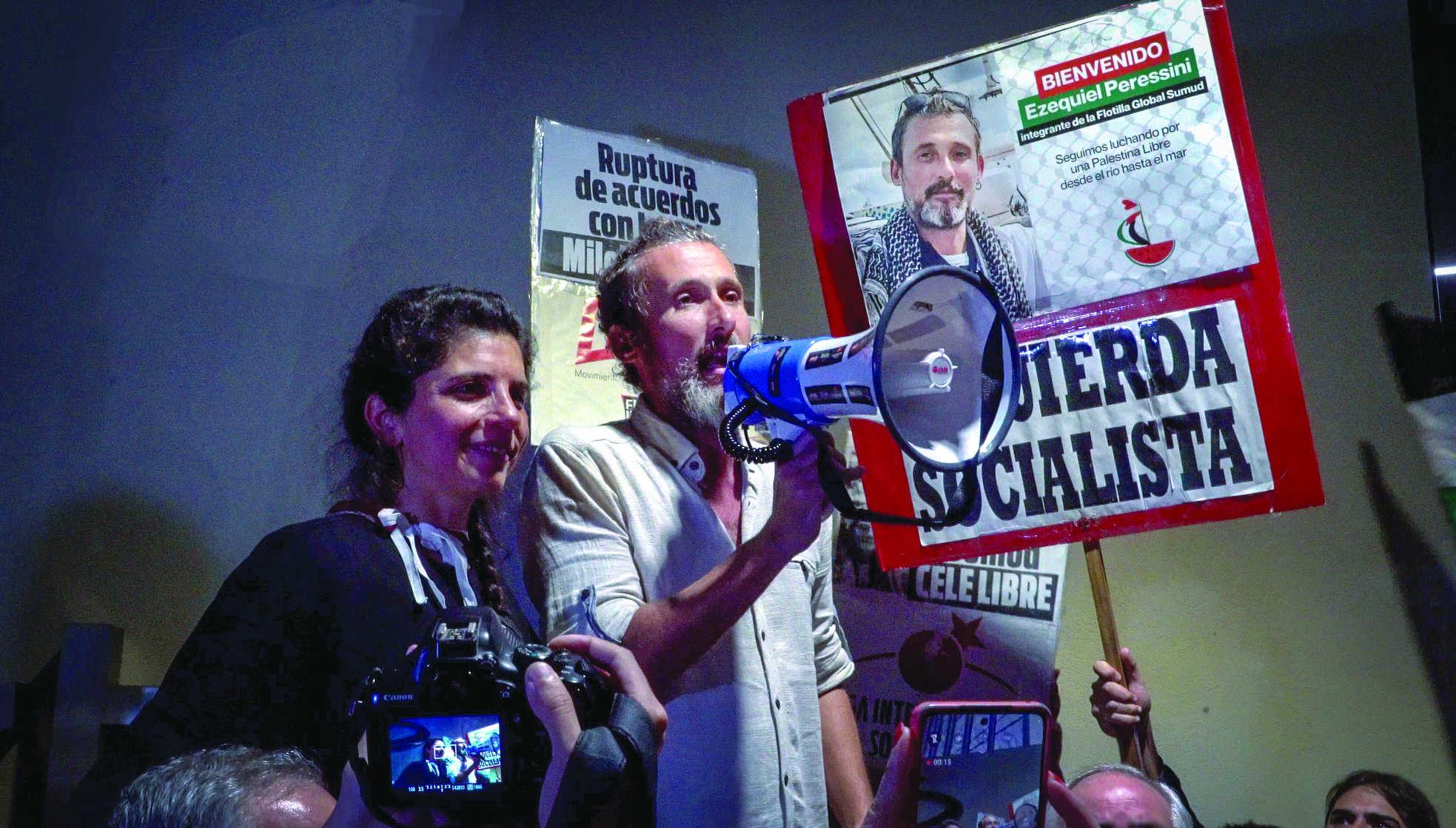 La recepción fue impresionante. Faltaba más de una hora para el arribo del avión y el hall de espera de Ezeiza estaba colmado de militantes, banderas palestinas, pancartas y los cantos retumbaban en el aeropuerto. De repente un grito de alegría y una emoción descontrolada fue la señal que indicaba que Ezequiel Peressini, dirigente de Izquierda Socialista y de la Unidad de Trabajadoras y Trabajadores Cuarta Internacional (UIT-CI) y Celeste Fierro del MST, integrantes de la Flotilla Global Sumud, habían llegado al país luego de ser secuestrados por la armada israelí.