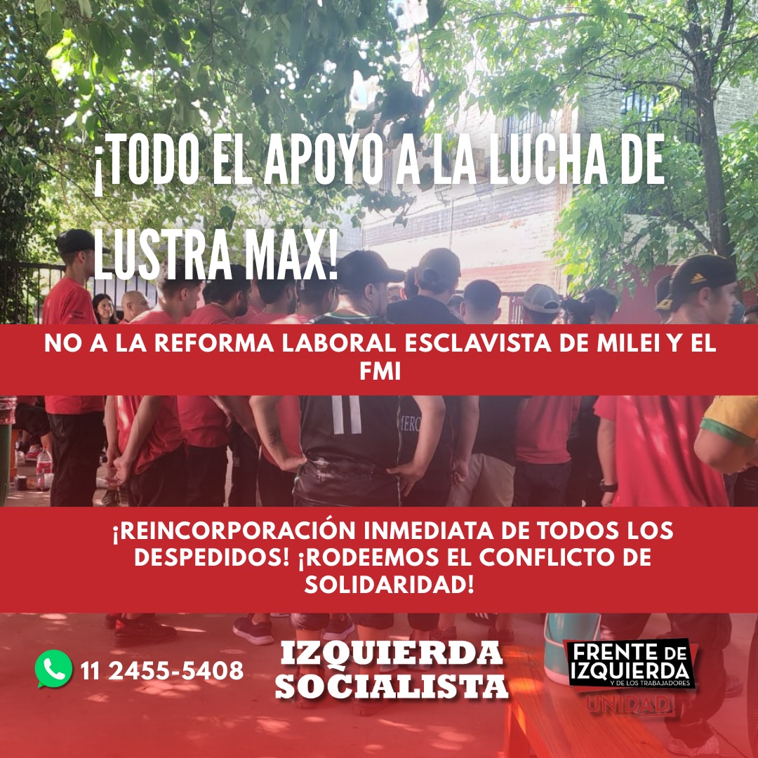 Desde Izquierda Socialista/FIT Unidad y de nuestra corriente sindical A Luchar, nos ponemos a disposición de la lucha de las compañeras y compañeros para que triunfen. Junto al Plenario del Sindicalismo Combativo seguiremos apoyando las luchas y reclamando a la CGT y a la CTA paro general para frenar los despidos y derrotar la reforma laboral esclavista de Milei y el FMI.