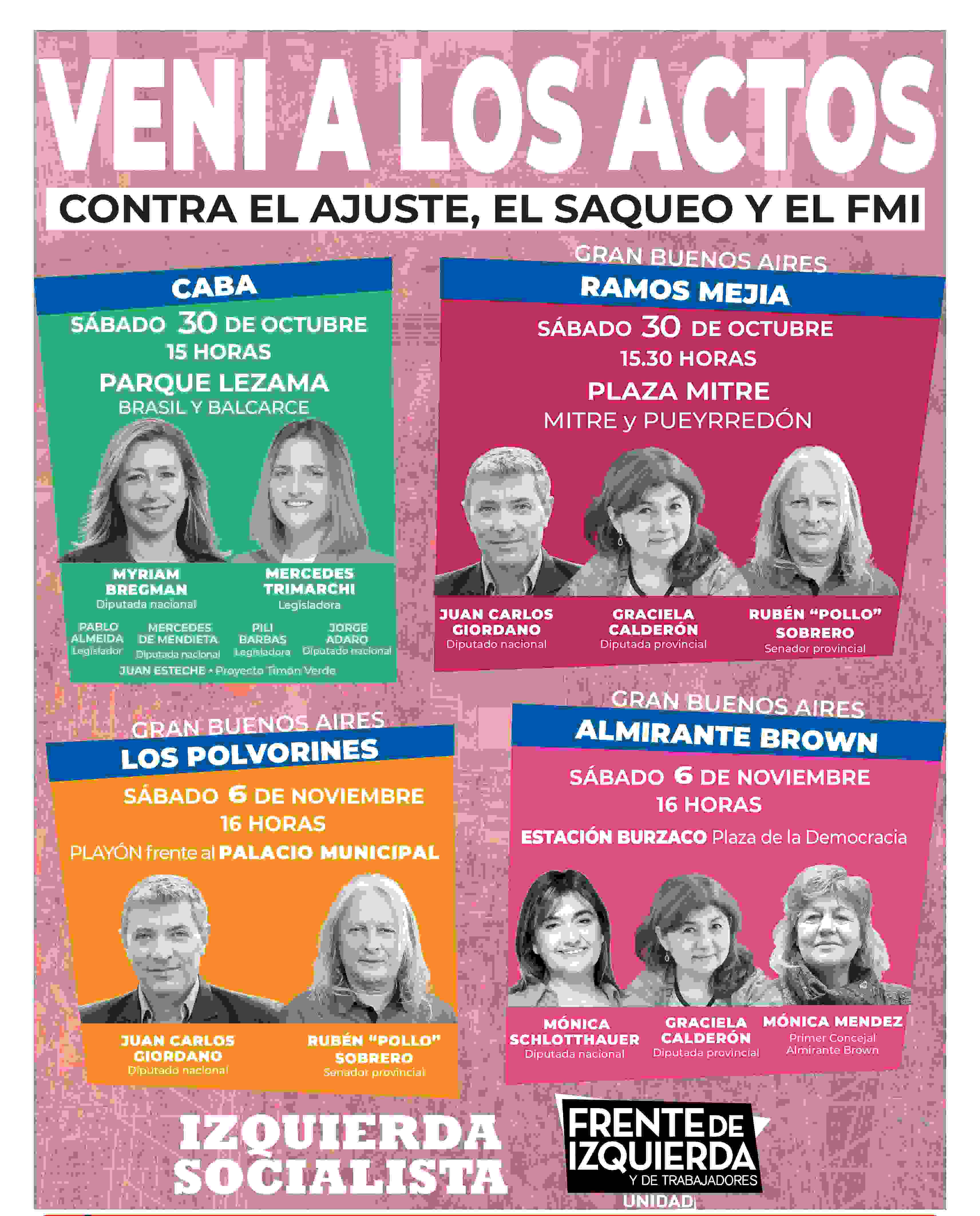 En el proyecto se denuncia que: “El acuerdo gobierno-FMI para reconocer los 45.000 millones que dejó Macri se sellará en el Congreso después de las elecciones entre el Frente de Todos, el macrismo de Juntos y los falsos “antisistema” Milei y Espert como buenos defensores de Menem-Cavallo. Solo el FIT Unidad se opone. Ese pacto de dependencia y sometimiento vendrá con un mayor ajuste, reforma laboral antiobrera, más ataques a nuestras jubilaciones y más entrega a manos de las multinacionales saqueadoras y contaminantes. Acá no hay grietas. “Todos”, “Juntos” y Milei han dicho que sí. Solo el Frente de Izquierda rechaza categóricamente este nuevo pacto de dependencia, ajuste y coloniaje.