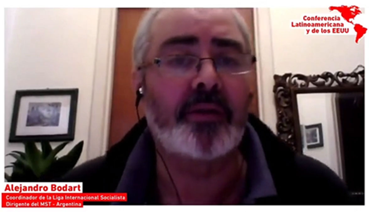 Sorans señaló que se vive la peor crisis del capitalismo en su historia, en la cual se combina la crisis del Covid-19 con una debacle social de la clase trabajadora y los pueblos del mundo. “Unidas estas dos pandemias al salto de la crisis ambiental, se está ante el dilema de socialismo o catástrofe”, afirmó Sorans. Lo destacable es que se retomaron las movilizaciones, a pesar del coronavirus, después de la gran oleada de luchas de 2019, señalando que el punto más alto ha sido la rebelión antirracista de los Estados Unidos que impactó en el mundo y debilitó a Trump. Todo abre la perspectiva de nuevas huelgas y nuevas rebeliones populares contra el intento de hacer que la crisis la paguen las trabajadoras y los trabajadores.