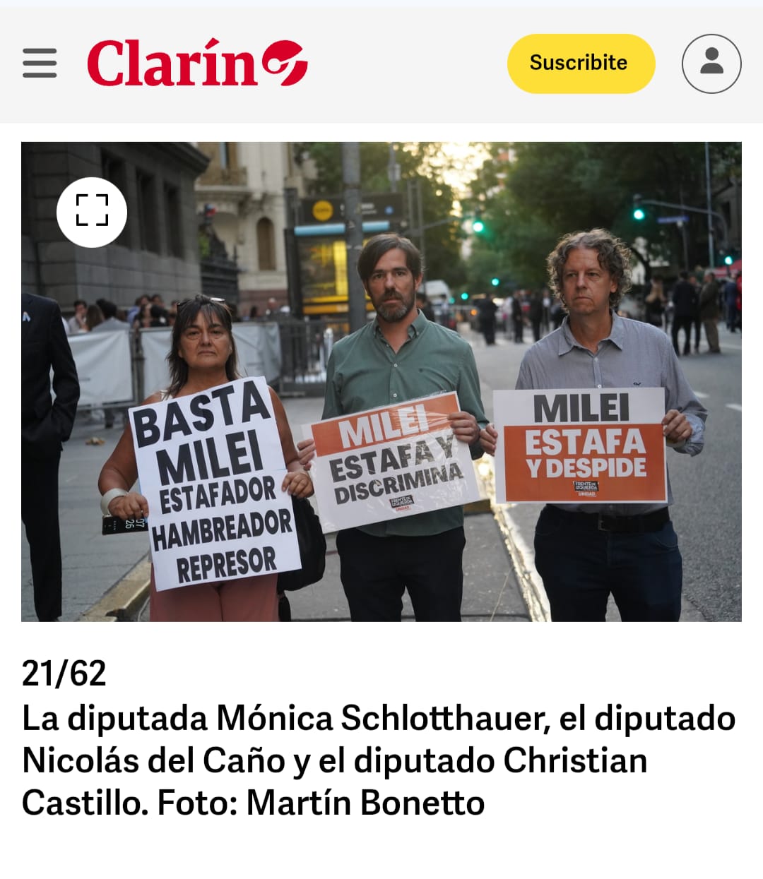 Este grave hecho no tiene que quedar en la impunidad. El Frente de Izquierda ha pedido en el Congreso una urgente interpelación al gobierno y desde Izquierda Socialista y el Partido Obrero en el FIT Unidad el juicio político. Ya hay denuncias penales en Argentina y en Estados Unidos. El bloque de Unión por la Patria en Diputados también pide el juicio político. Pero el centro no debe pasar por el Congreso (donde la oposición le viene avalando las leyes al gobierno) sino en seguir enfrentando a Milei en las calles y a su brutal motosierra.