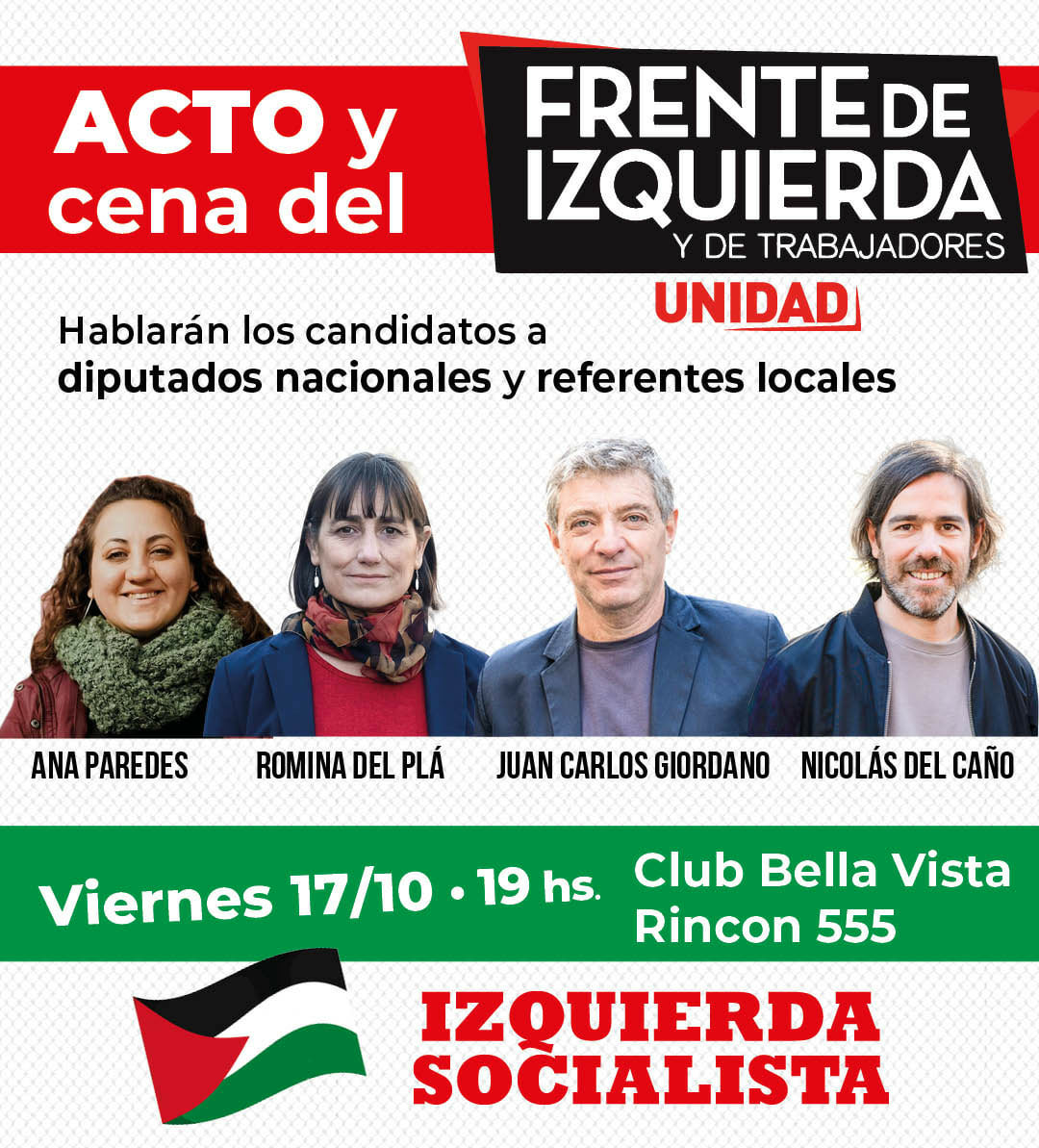 Este miércoles 22 de octubre a las 17:30 horas, frente a la embajada de EEUU, el FIT Unidad realizará el acto de cierre de Provincia y CABA.