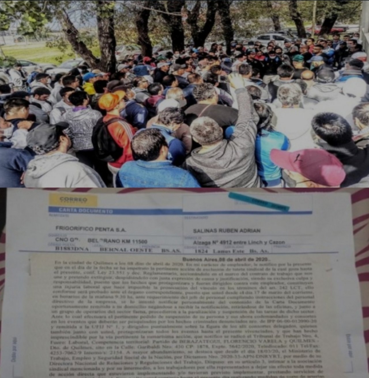 Mientras los trabajadores aguardaban en asamblea la audiencia en el Ministerio de Trabajo para hoy a las 14 horas, la patronal despidió a los delegados. Un nuevo ataque del empresario negrero Ricardo Bruzzese que se da en el marco del paro nacional de la Federación de la Carne en repudio a la represión de días atrás, por el pago de los salarios y la fuente de trabajo de 250 familias.