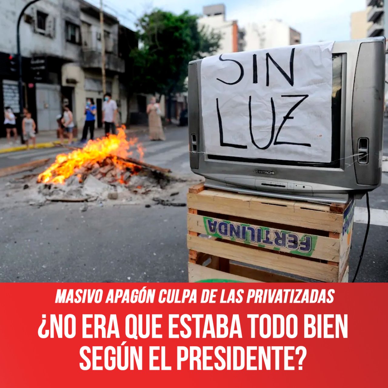 Juan Carlos Giordano, diputado nacional electo (Izquierda Socialista/FIT Unidad), señaló: “Hoy el presidente en su discurso dijo que estaba todo bárbaro en el país y se da otro tremendo apagón. Ahora dice que no se conocen los motivos pero la causa ya la sabemos, es la privatización del sistema eléctrico y la desinversión permanente por parte del gobierno de lo poco que controla. Ahora es este apagón, antes los cortes de Edesur, los responsables siguen en la impunidad y no pagan los daños. Desde Izquierda Socialista apoyamos todas las acciones que hagan los vecinos para que vuelva el servicio de manera urgente”.