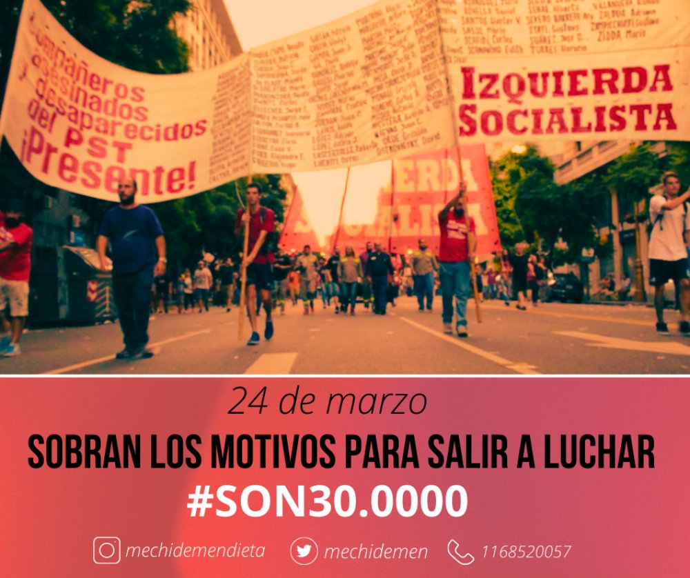 Mendieta finalizó: Vamos a la marchar con la memoria de los 30.000 y los mártires del glorioso PST que dieron la vida por una Argentina Socialista. Decimos que gobiernen la izquierda y las y los trabajadores. Y llamamos a la no división del FITU en las PASO y por la fórmula unitaria Bregman-Solano que pelé en unidad contra los gobiernos ajustadores”.