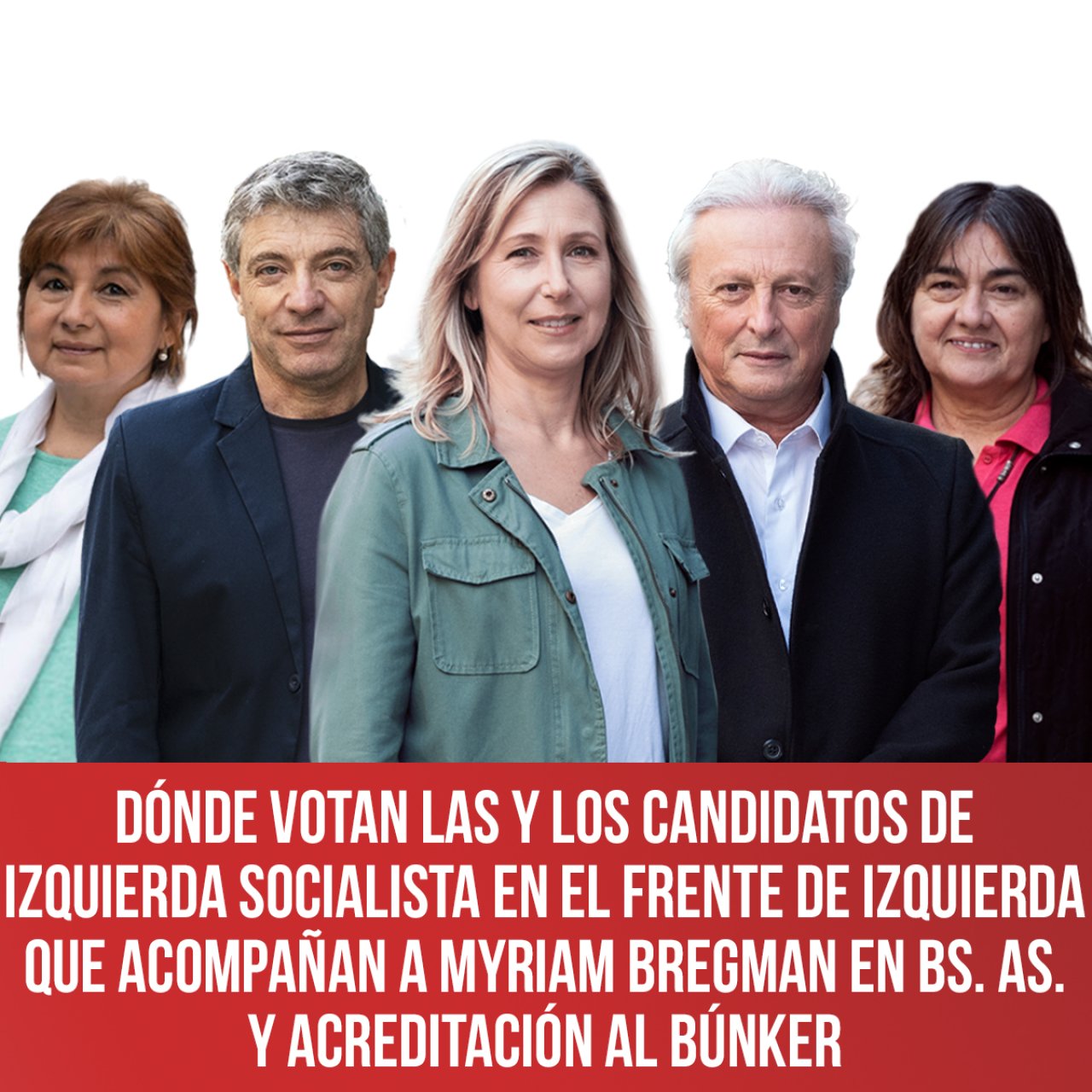 A continuación, detallamos dónde y cuándo emitirán su voto las y los principales candidatos de Izquierda Socialista / Frente de Izquierda Unidad de Provincia de Buenos Aires.