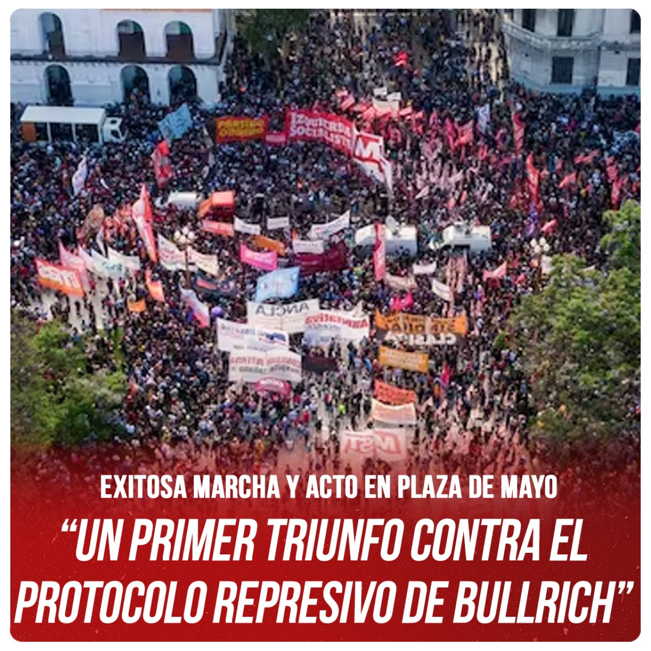 Sobrero y Giordano dijeron: “El gobierno montó un operativo represivo desde temprano con una campaña de amedrentamiento en los trenes y policías subiéndose a los colectivos filmando a los pasajeros. En Diagonal Norte quisieron impedir el avance de una de las columnas a la Plaza. Pero al gobierno le fracasó su accionar porque fuimos miles los que pudimos llegar a la Plaza de Mayo y participar del acto, donde se leyó el documento unitario repudiando el plan motosierra de Milei y el protocolo represivo de Bullrich, planteando que la crisis la paguen los grandes empresarios y el FMI, no las y los trabajadores”.
