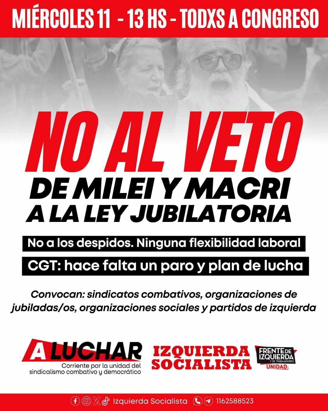 Este miércoles 11 de septiembre a las 13 horas el sindicalismo combativo y la izquierda llaman a concentrar frente al Congreso, sumándose con una columna independiente a la jornada convocada por algunos gremios de la CGT y las CTA.