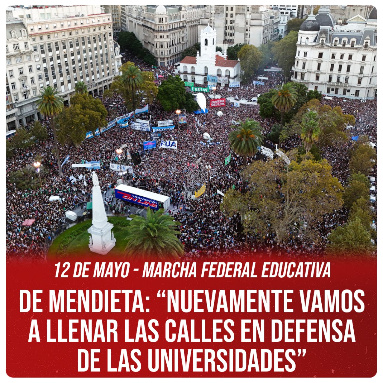 El próximo 12 de mayo se realizará una nueva macha federal educativa exigiendo el cumplimiento del financiamiento universitario que el gobierno de Javier Milei se niega a cumplir, y en defensa de la ciencia y técnica que sufren el peor de los ajustes.