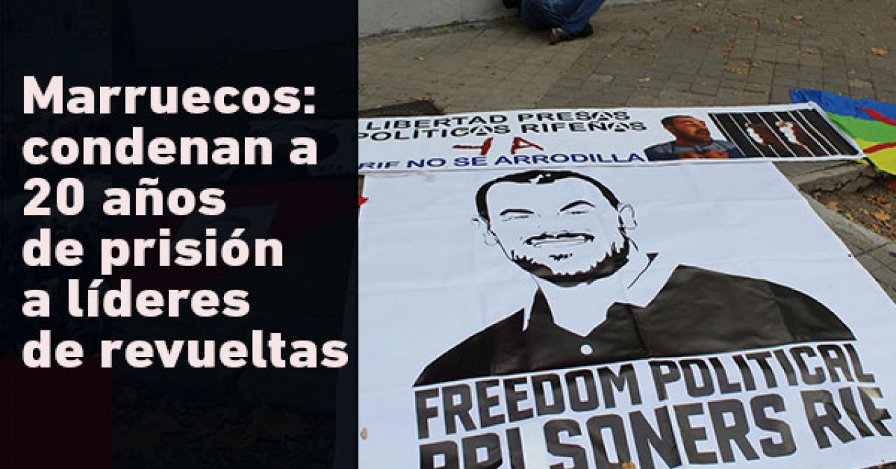 El activista Nasser Zefzafi, la cabeza más visible de las protestas de la región norteña del Rif, en Marruecos, ha sido condenado a veinte años de prisión acusado de “complot contra la seguridad del Estado” y otras 53 personas tienen condenas de entre uno y veinte años. Las protestas en el RIF fueron en octubre de 2016 como respuesta a la desocupación y miseria de la mayoría de su población.