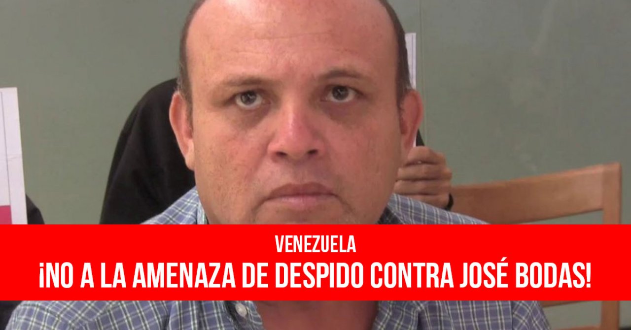 Por redes sociales y otras vías, ha circulado la amenaza de despido de José Bodas de Pdvsa (petrolera estatal). Bodas es trabajador de la refinería Puerto La Cruz, en el estado Anzoátegui, con 31 años de servicio, operador de planta y actualmente secretario general de la Federación Unitaria de Trabajadores Petroleros (Futpv), elegido por las trabajadoras y trabajadores petroleros en la plancha de C-CURA.