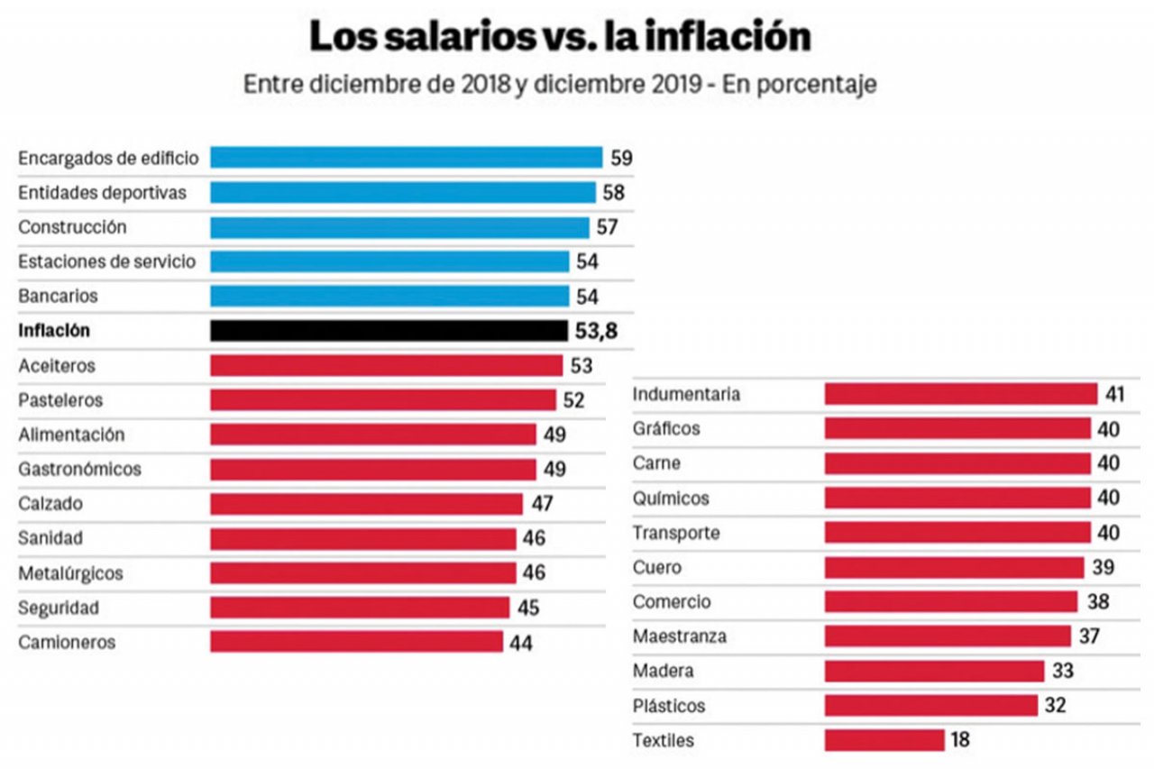 Todo esto sucede sobre salarios que ya venían pulverizados por los años de política macrista, donde de promedio se perdió el 30% del valor adquisitivo. Sólo refiriéndonos al año 2019, la inmensa mayoría de los gremios terminaron perdiendo contra la inflación. Hoy el promedio del salario trabajador es de 25.000 pesos (según el Indec el 60% de los trabajadores gana menos de 20.000 pesos), cuando la canasta familiar, calculada por la Junta Interna de ATE Indec ya alcanza los 61.000 pesos.
