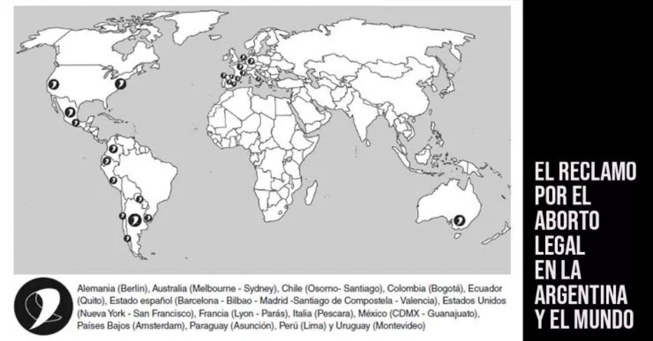 Por otro lado, la convocatoria al 28M tuvo apoyo internacional en varias ciudades del mundo. Feministas se concentraron en embajadas y consulados de la Argentina para acompañar la presentación del proyecto de ley, pero sobre todo para exigir que se apruebe porque el aborto es un derecho que ya fue conquistado en la mayoría de los países del mundo y se tiene que lograr también en la Argentina. Las acciones se dieron desde Estados Unidos hasta Chile, pasando por Perú, Ecuador y Colombia. Y en Europa en ciudades como Berlín, Barcelona, Madrid , París y Amsterdam.