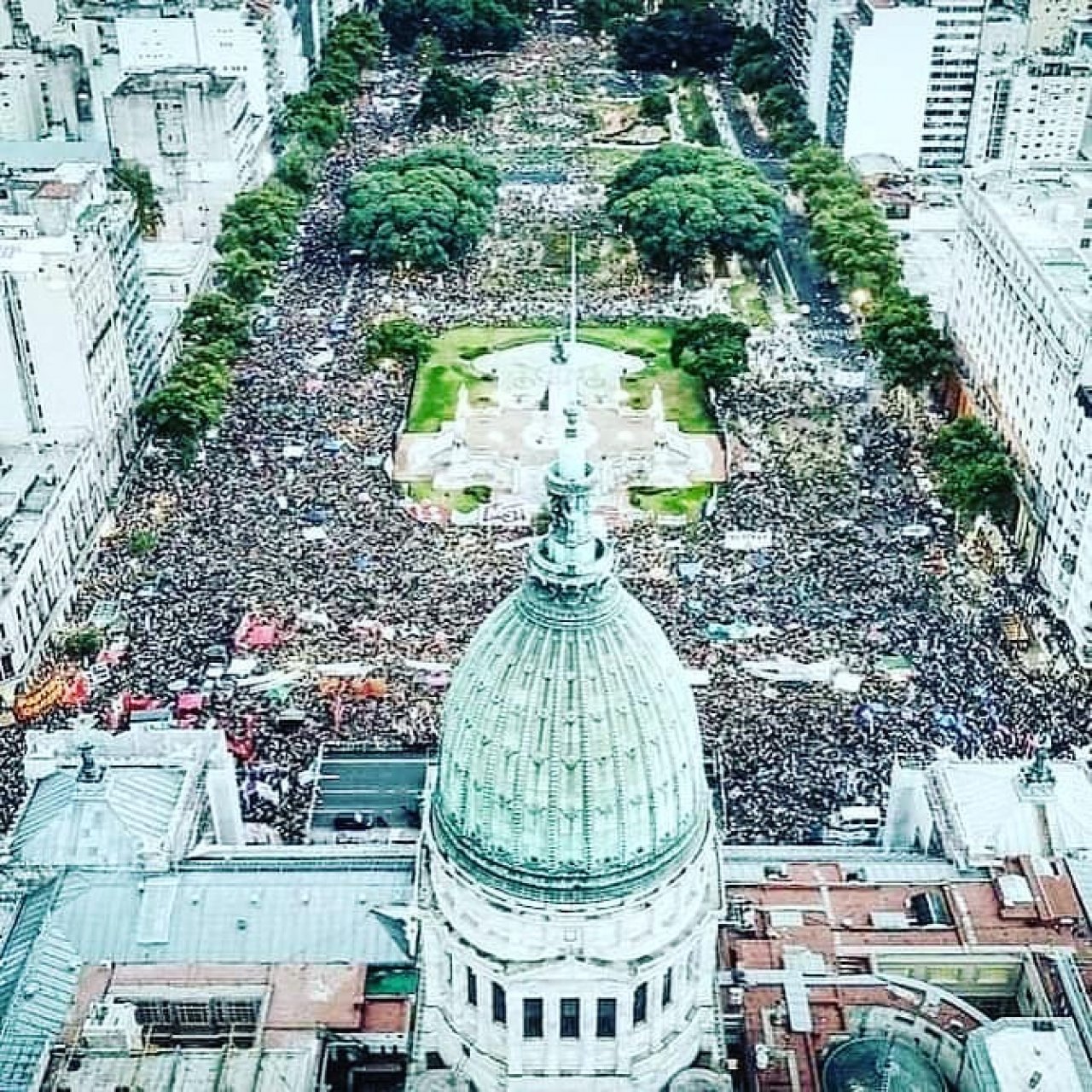 En Argentina, al momento de la movilización se habían contado más femicidios que días. Por eso, en el país del #NiUnaMenos, el reclamo por presupuesto para combatir la violencia de género continúa más vigente que nunca. La marcha en Buenos Aires, se convocó bajo la consigna: “La deuda es con nosotres, ni con el FMI, ni con las iglesias” y denunció el pago de la deuda externa. A su vez, el reclamo por el derecho al aborto legal, seguro y gratuito fue la demanda central de la movilización del lunes 9M. Por eso, frente al Congreso, decenas de miles de mujeres levantaron en alto el pañuelo verde exigiendo que se apruebe inmediatamente el proyecto de la Campaña nacional por el derecho al aborto que tiene estado parlamentario y que fue construido por el movimiento feminista.