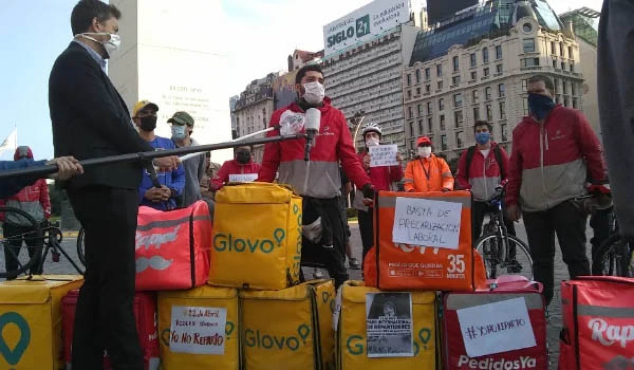 Trabajadores de reparto de las apps Glovo, Rappi, Pedidos Ya, Uber Eats, entre otras, realizaron un paro de actividades coordinado con trabajadores de seis países para reclamar mejores condiciones laborales. Exigen “100% de aumento del pago por pedido y elementos de seguridad e higiene que sean de calidad y en cantidad”, acorde con la tarea que realizan en plena crisis sanitaria, además de una reducción de la jornada laboral sin que suspendan sus cuentas.