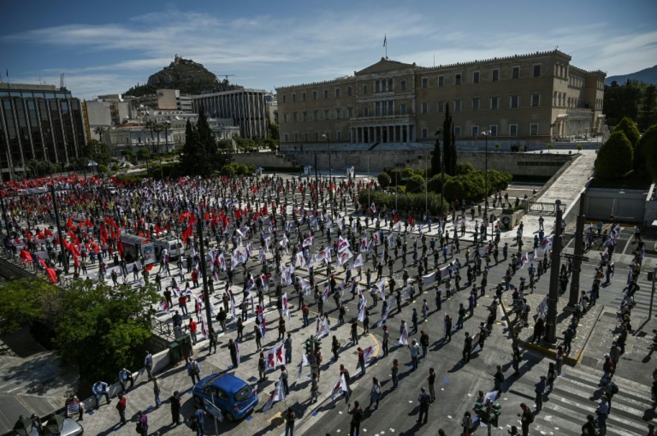 En medio de la crisis, agravada por la pandemia, en diversos países los trabajadores se manifestaron de diferentes formas. En Atenas decenas de personas se dieron cita en las afueras del parlamento griego y, desafiando las prohibiciones del gobierno, se organizaron en filas utilizando marcadores en el piso para conservar la distancia. A diferencia de la manifestación pacífica en la capital griega, en Turquía la policía detuvo en Estambul a veintiséis miembros de uno de los mayores sindicatos del país por incumplir la prohibición de manifestar en la calle a causa de la crisis sanitaria.