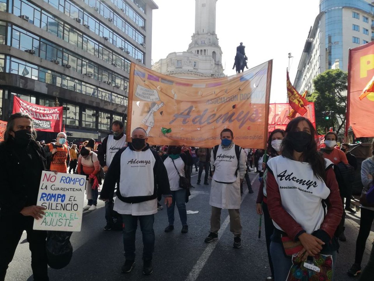 Desde Ademys esta semana impulsamos una asamblea muy importante, una asamblea virtual, y lo que impulsamos fue que los trabajadores tenemos que estar organizados para enfrentar los distintos ataques que tenemos por delante. Para poder sostener la cuarentena necesitamos salarios dignos, necesitamos que la familia de nuestros pibes y pibas estén en condiciones y necesitamos que todos los estudiantes y todos los docentes tengan los recursos necesarios, esto es computadoras y, sobre todo, conectividad. En ese sentido, y en ese marco, es que Rodríguez Larreta pretende no solo congelar nuestros salarios y dejar en suspenso el aumento que ya estaba pactado para julio, sino que además intentó avanzar con el pago de salarios en cuotas, por eso es tan importante esta movilización.