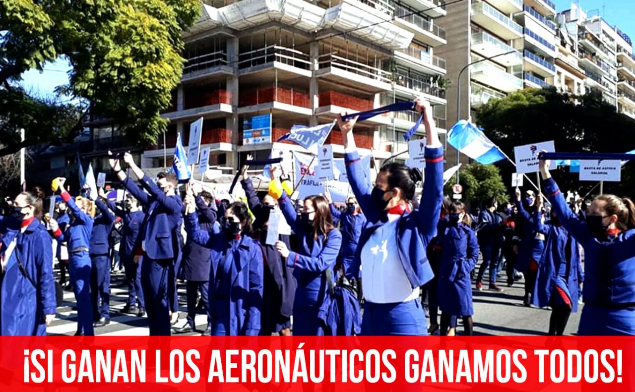 El martes 11 los trabajadores realizaron una nueva caravana desde Aeroparque hasta la embajada de Chile y luego al Obelisco. Fue de gran impacto ver a las azafatas en la primera línea de la lucha. Y este miércoles 12 participan del Plenario Nacional del Sindicalismo Combativo para multiplicar la solidaridad. ¡Si ganan los aeronáuticos ganamos todos!