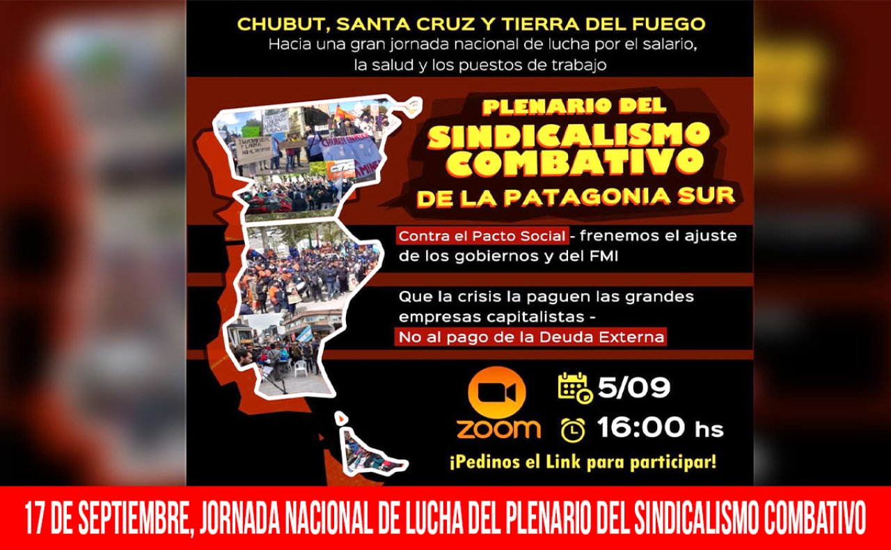 Sobre los plenarios regionales, se informó que el de Patagonia Sur (Tierra del Fuego, Santa Cruz y Chubut) se realizará este sábado 5 de septiembre, con la participación de importantes dirigentes sindicales combativos y luchadores de las tres provincias, con su organización ya encaminada.