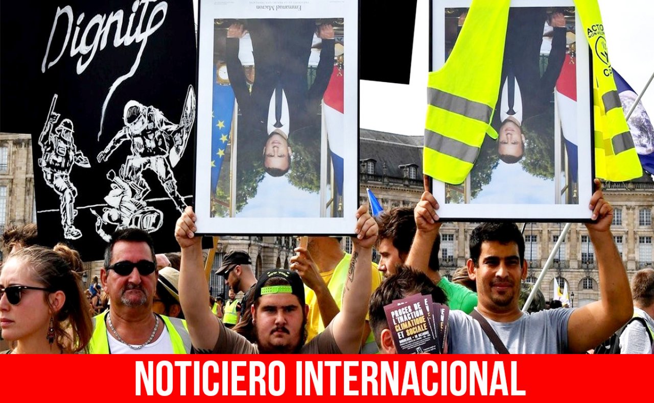 Los “chalecos amarillos” retomaron sus protestas en Francia. Casi dos años después de sus primeras movilizaciones, salieron a las calles este sábado con acciones en París y ciudades como Marsella, Toulouse, Lyon, Lille, Nantes, Niza, Burdeos o Estrasburgo. Las fuerzas de seguridad emplearon gas lacrimógeno contra los manifestantes y detuvieron a doscientos. La policía publicó fotografías en redes sociales de cuchillos, máscaras y un arco incautados durante los enfrentamientos. Entre las actuales demandas reclaman un aumento del salario mínimo y la rebaja de impuestos a los jubilados, confrontando, en general, contra el plan económico del primer ministro Macron.