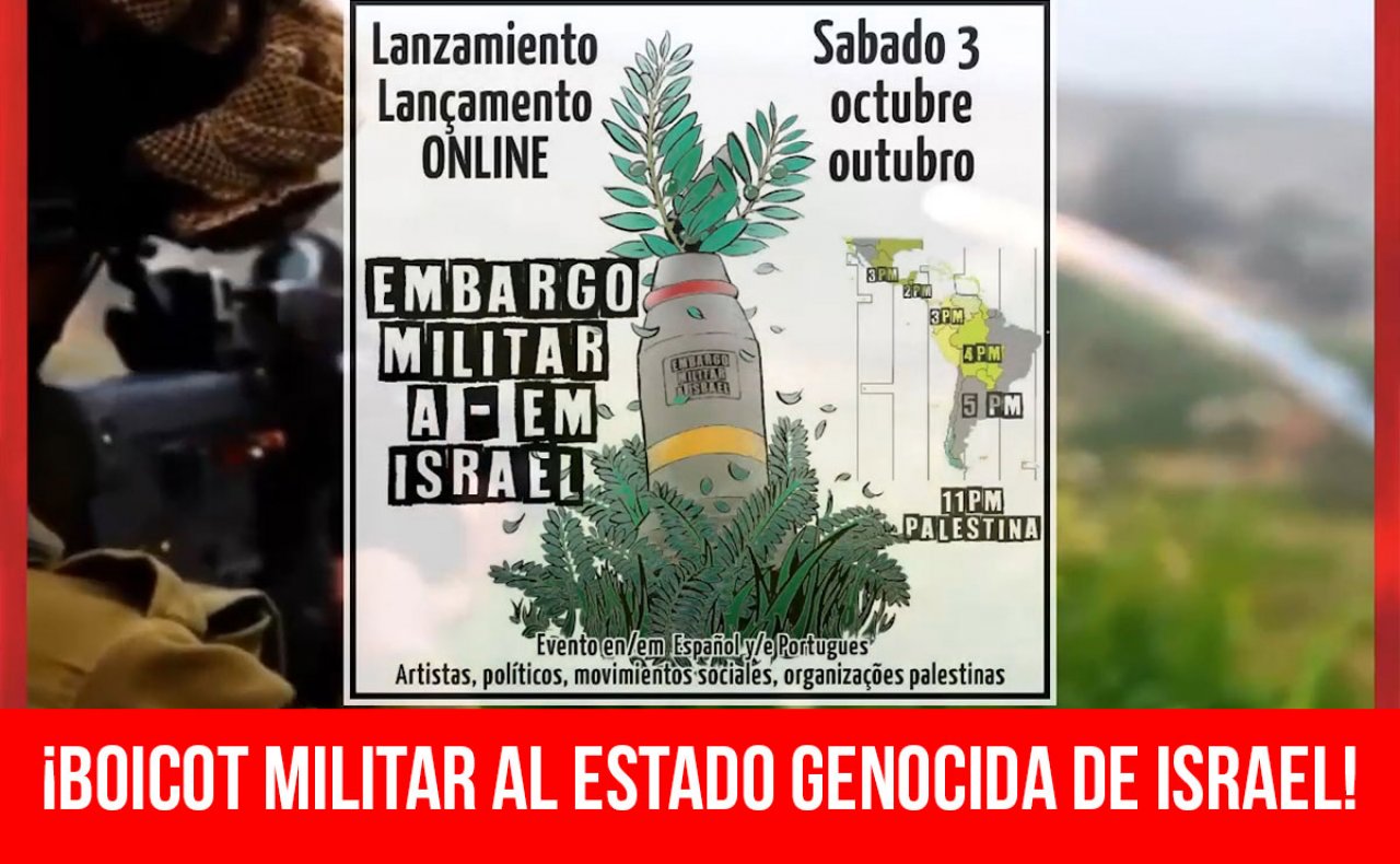 El sábado 3 de octubre, a las 17 de la Argentina, se inicia la campaña regional por el embargo militar a Israel con el objetivo de denunciar estos acuerdos y exigir su inmediata anulación.