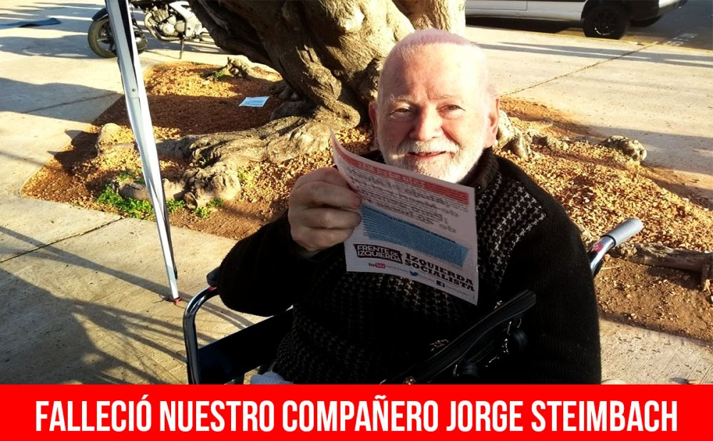 El 23 de octubre falleció nuestro querido compañero Jorge Steimbach, de la regional San Martín-Tres de Febrero de Izquierda Socialista. Finalmente, cedió a una serie de enfermedades que venía arrastrando que lo llevaron a que en los últimos años de su vida tuviera que movilizarse en silla de ruedas, siempre acompañado por su compañera Viviana.