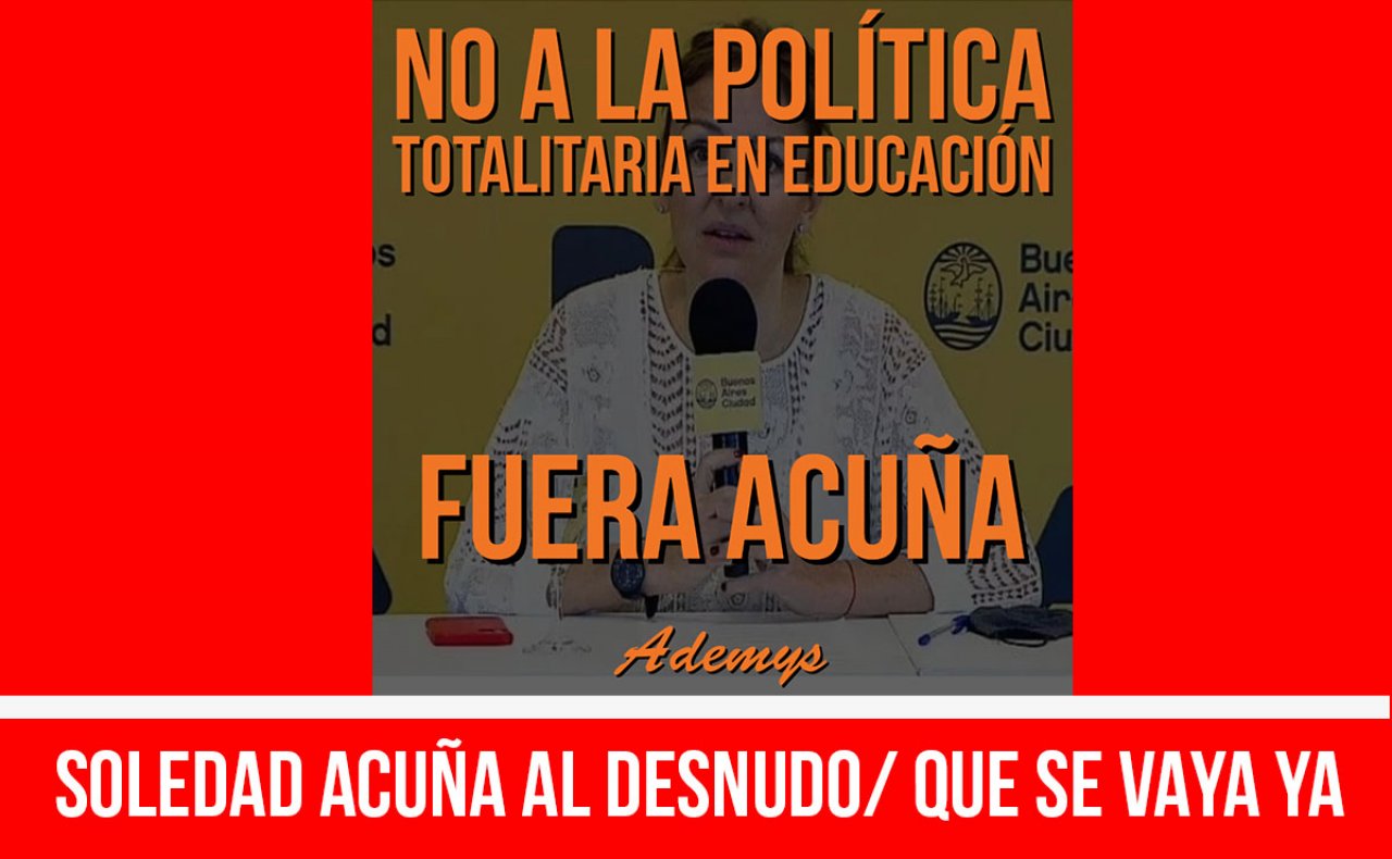 Desde el sindicato docente Ademys respondimos duramente y estamos pidiendo que se vaya ya (ver link de Ademys: https://www.ademys.org.ar/v2/total-repudio-a-la-politica-totalitaria-de-acuna/). Si Soledad Acuña tuviera algo de dignidad personal ya habría presentado sus disculpas… y su renuncia.
