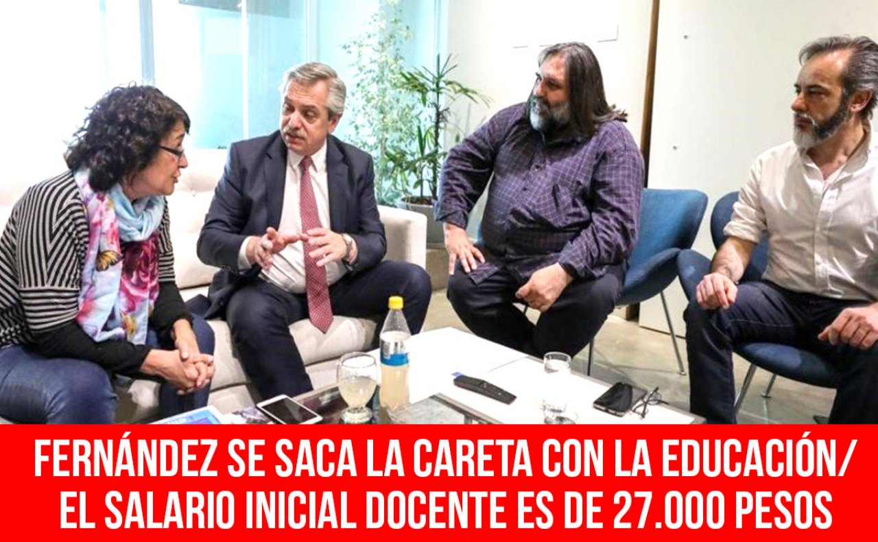 La noticia, textual, no da margen para comentarios. Para Alberto Fernández y Trotta es un gran logro que el salario de un docente sea de 27.500 pesos, cuando la canasta familiar es de 76.500 pesos, según ATE Indec, y la canasta de pobreza está en 49.912. ¡Una vergüenza que muestra la realidad de su doble discurso sobre “la importancia de la educación y la docencia”!