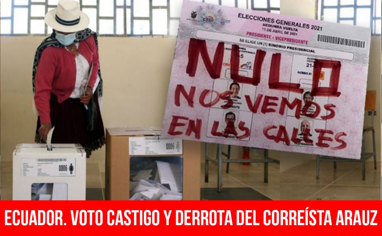 El banquero liberal derechista Guillermo Lasso ganó en segunda vuelta con 4,4 millones de votos contra 4 millones del correísta Andrés Arauz y con 1,8 millones de votos nulos y en blanco a los que llamó la Confederación Nacional Indígena de Ecuador (Conaie). El voto por Lasso no expresa un apoyo popular a sus propuestas sino que predomina un voto castigo a la centroizquierda.