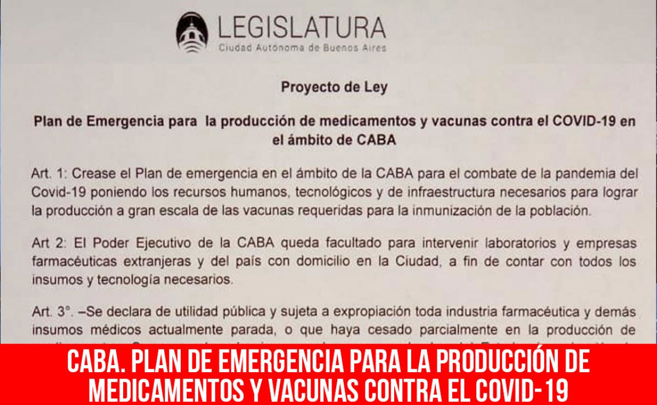 "Proponemos utilizar la capacidad productiva de la Ciudad junto con las millones de dosis de la vacuna Astra-Zeneca que se producen en Garín que deberían quedar en el país." Afirma el proyecto.