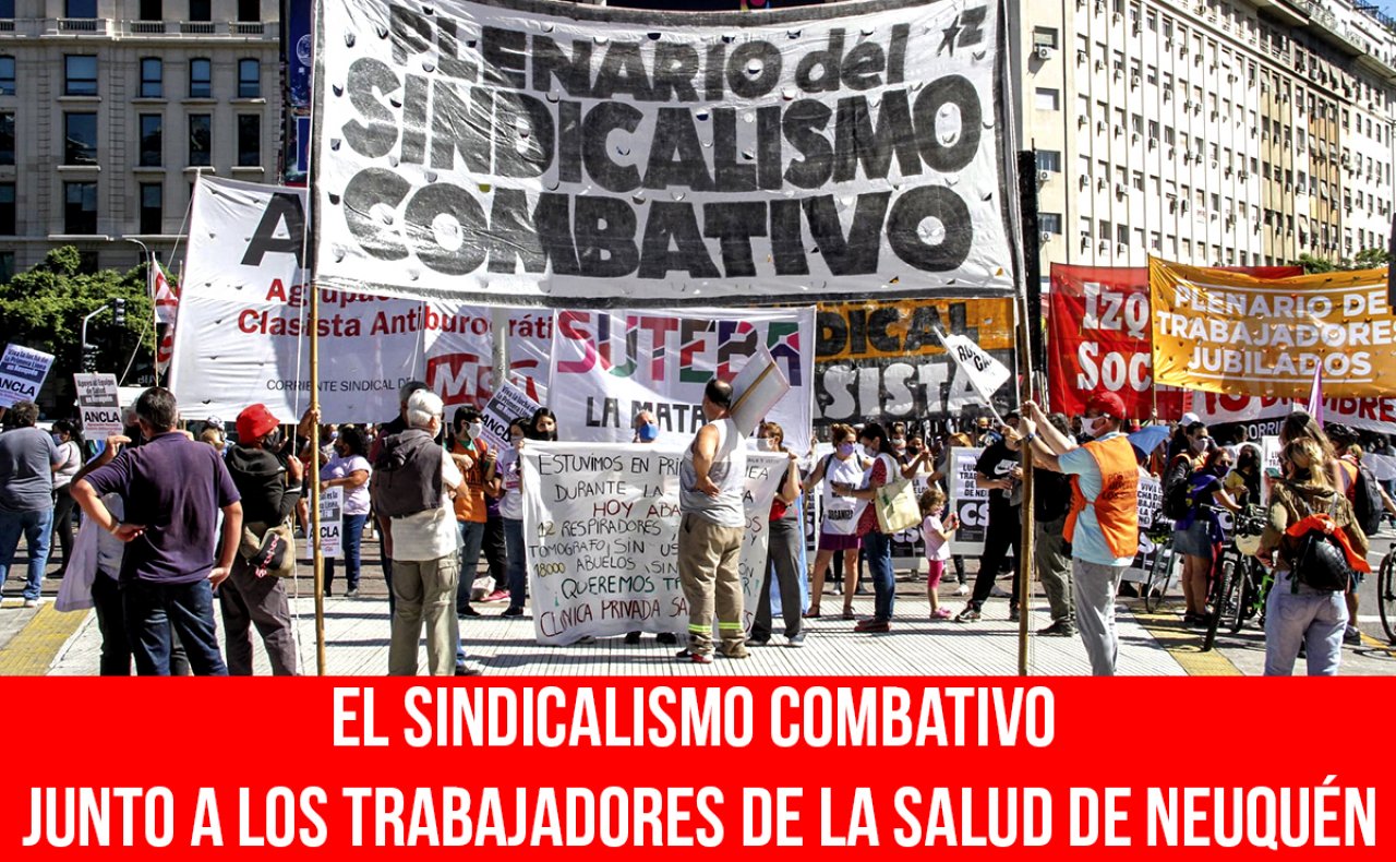 El Plenario del Sindicalismo Combativo se movilizó al Obelisco y a la Casa de la Provincia de Neuquén en Caba para apoyar a la huelga de las y los trabajadores de la salud de esa provincia. Participaron Roberto Obelar, trabajador de la salud de Neuquén; Mónica Schlotthauer, diputada nacional electa y delegada del Ferrocarril Sarmiento; Ileana Celotto, secretaria general de AGD-UBA; Alfredo Cáceres, comisión directiva de Suteba Tigre; Julio Ozuna, trabajador de la clínica San Andrés; César Latorre, comisión interna Hospital Italiano. Además se hicieron presentes Myriam Bregman (PTS) y Pablo Almeida (Izquierda Socialista), legisladores de CABA por el Frente de Izquierda Unidad.