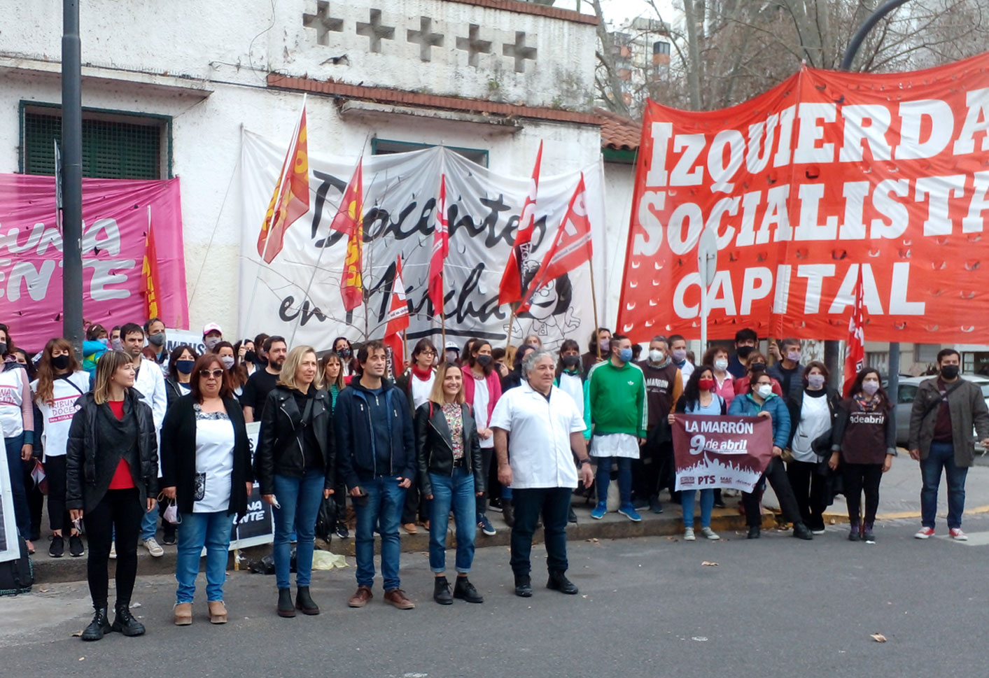 Myriam Bregman, Gabriel Solano, Mercedes Trimarchi, Jorge Adaro, Amanda Martín, Alicia Navarro, Mariana Scayola, Mercedes de Mendieta y Pablo Almeida junto a decenas de docentes en CABA, que integran y apoyan la Lista 1A Unidad de la Izquierda