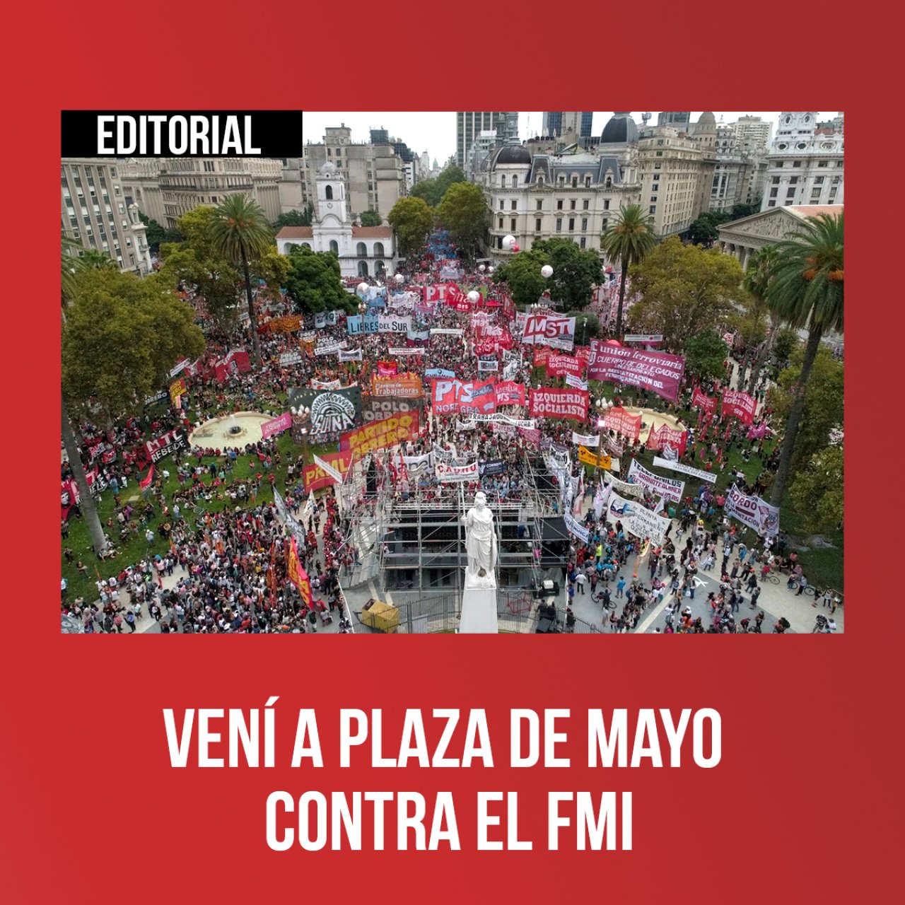El próximo sábado 11 de diciembre el Frente de Izquierda Unidad está convocando, junto a un arco muy importante de organizaciones políticas, sindicales y sociales, a una gran marcha y acto en Plaza de Mayo bajo la consigna: “La deuda siempre se paga con el hambre del pueblo. Ningún acuerdo. ¡Fuera el FMI!”. Será una tribuna para exigir que la plata vaya a salarios, jubilaciones, salud, educación y un plan de viviendas para generar trabajo genuino, y no para seguir pagando una deuda externa usuraria y fraudulenta o para engordar los bolsillos de un organismo imperialista como el Fondo Monetario Internacional.
