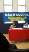 Toda la actividad estuvo presidida por un cartel con las consignas: No a la Guerra, Putin Fuera de Ucrania, No a la OTAN. El panel de la mesa debate estuvo integrada por García Pereira, conocido abogado laboralista, Mercedes Petit y Flavio Ferreira, de la dirección nacional del MAS. Fue muy importante que interviniera, directamente desde Kiev, Sergei, integrante de la Sociedad Global, que agrupa militantes de izquierda y anarquistas ucranianos en la resistencia.