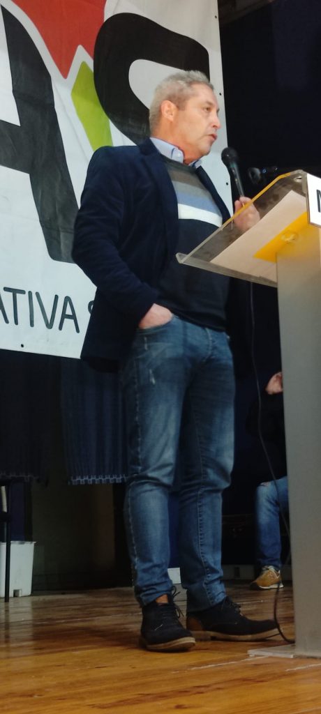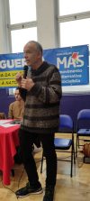 Luego de la cena se hicieron las intervenciones políticas. La primera fue el saludo de Miguel Sorans, en nombre de la UIT-CI. Sorans reiteró el agradecimiento por la invitación, que fue parte del intercambio y de las actividades comunes del Comité de Enlace MAS / UIT-CI que ambas organizaciones han acordado para profundizar las relaciones en miras hacia una posible integración. Luego dio un saludo la compañera Ángela, integrante de un sindicato de inmigrantes de Suiza. Los oradores de fondo fueron el dirigente nacional Gil García y la dirigente y ex candidata a diputada Renata Cambra.