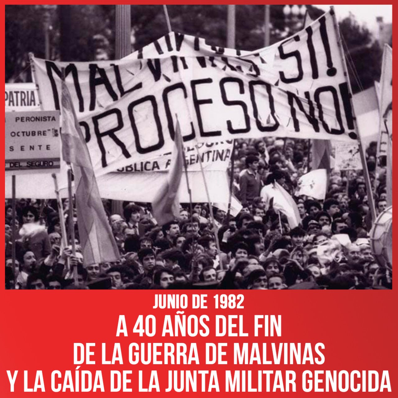 El 14 de junio de 1982, el General Menéndez firmó la rendición argentina dando por terminada la Guerra de Malvinas. La movilización revolucionaria de las masas, motorizada por la bronca creciente, derribó a Galtieri y al régimen militar, conquistando amplias libertades democráticas y abriendo una nueva etapa en el país. Pero la ausencia de una dirección revolucionaria de peso permitió a peronistas y radicales desviar la movilización hacia las elecciones y la democracia burguesa, continuando con el capitalismo semicolonial.