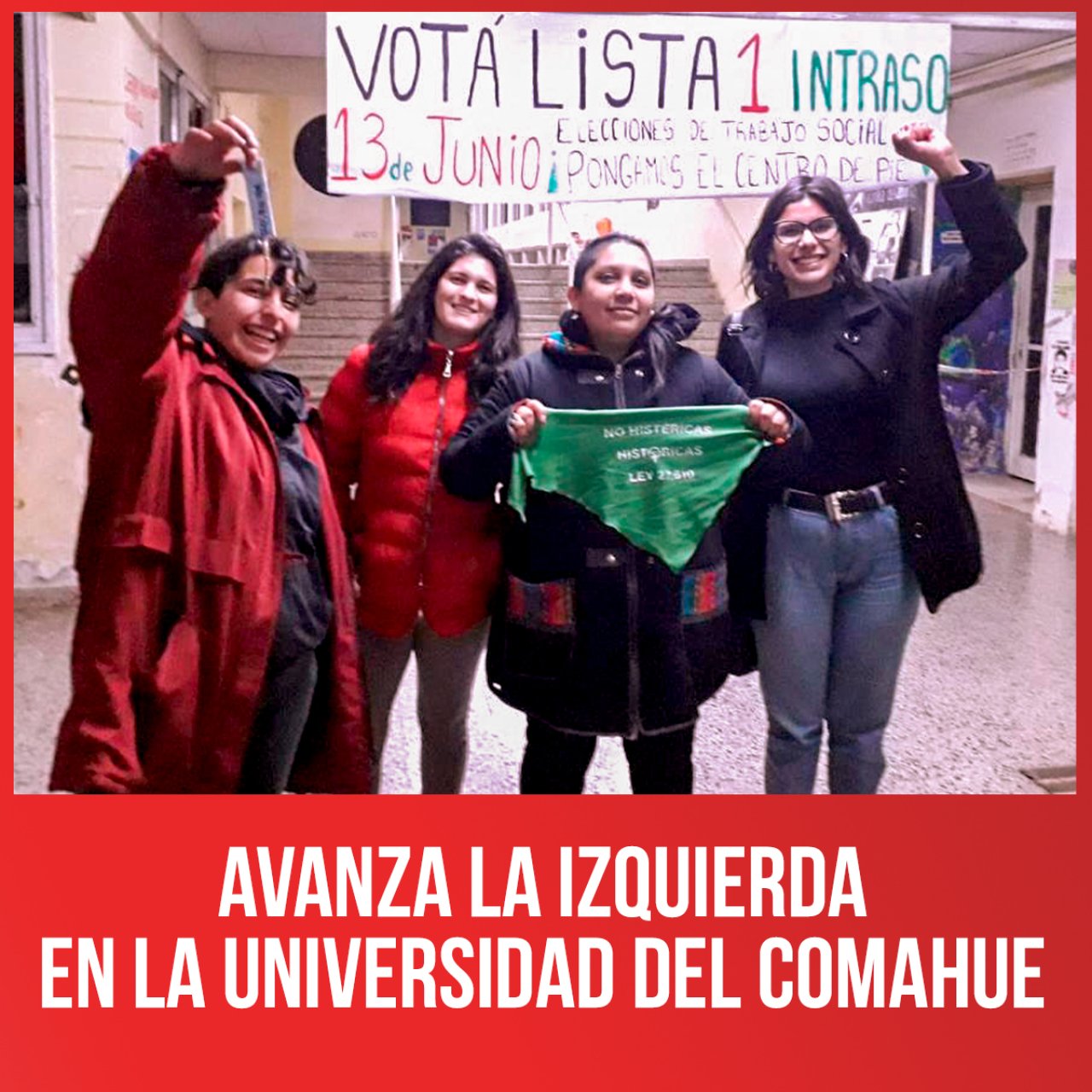 En junio se realizaron elecciones de centros de estudiantes de Humanidades (Cehuma) y de Trabajo Social (Cetraso). En el Cehuma obtuvimos el 53% de los votos. Les estudiantes apoyaron la tarea que llevamos adelante con el resto del FIT Unidad en los últimos años. Este resultado permitió que Izquierda Universitaria (Izquierda Socialista e Independientes) accediera por primera vez a la vicepresidencia de un centro de estudiantes en la universidad del Comahue. En cuanto al resto de las listas, el Nuevo MAS obtuvo un 26,8%, retrocediendo en los cargos que tenía, lo que es un claro mensaje de les estudiantes ante el divisionismo y oportunismo planteados por este partido en una campaña de difamación y mentiras grotescas, acusando al FIT Unidad de “transar con la gestión” y actuar a espaldas de les estudiantes. Además, una lista de independientes sacó el 19%. Tal como dijimos durante la campaña, nos postulamos para ser una dirección que luche por el presupuesto universitario y por el Boleto Educativo Interprovincial, manteniendo la independencia política de los gobiernos y de las autoridades.