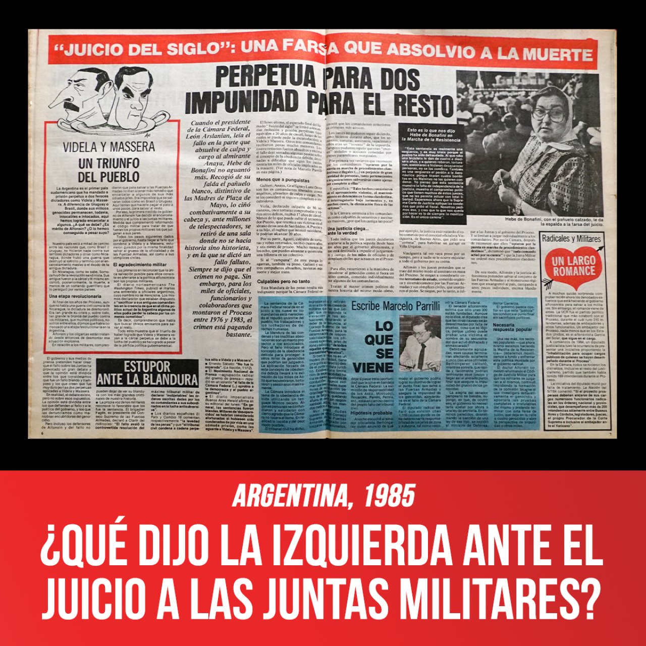 En ese sentido, el juicio a las Juntas terminaba representando, al mismo tiempo, un triunfo en tanto posibilidad de sentar a las cabezas del genocidio en el banquillo de los acusados. Pero, al mismo tiempo, implicaba la maniobra de acotar los procesos sin ir a fondo por el “juicio y castigo a todos los culpables”, que era la consigna de masivas movilizaciones que se daban en paralelo a las audiencias del proceso judicial.