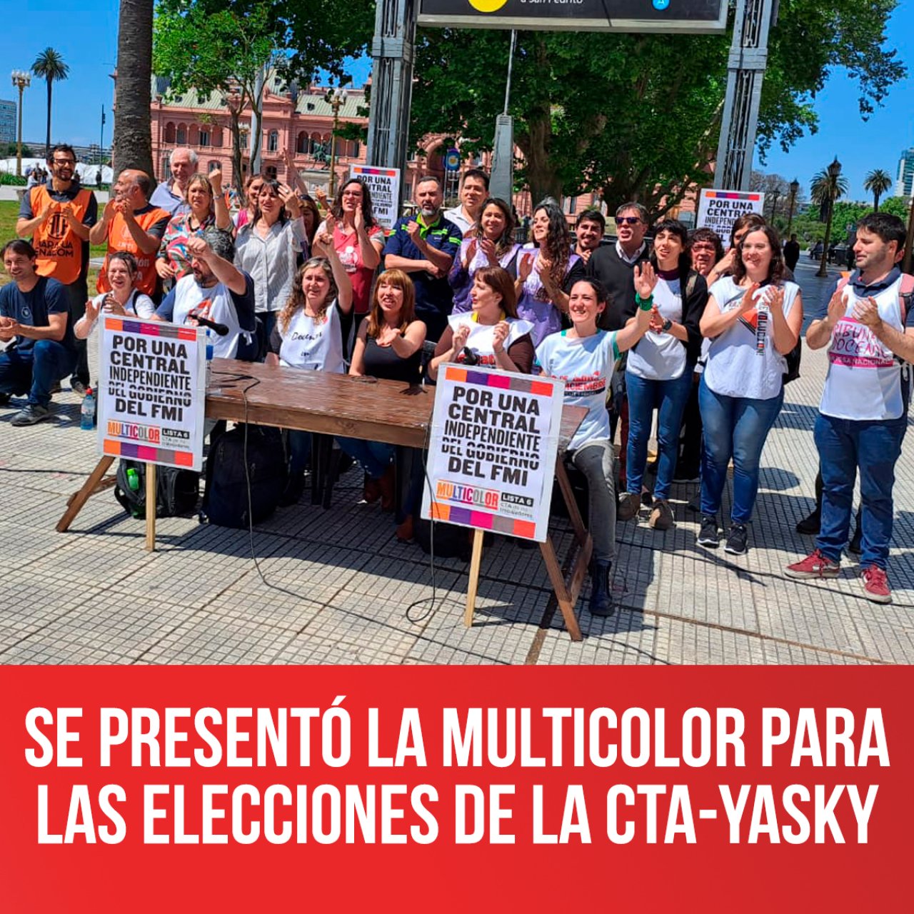 Con una conferencia de Prensa en Plaza de Mayo y candidatos nacionales, de CABA y provincia de Bs As se presentó la lista 6 Multicolor que dará pelea el 9 de noviembre contra la burocracia de Hugo Yasky, que agrupa a todas las corrientes antiburocráticas que decidimos ir en unidad por una Central independiente del gobierno, del FMI y de la embajada de los Estados Unidos, por la democracia sindical, que organice e impulse la lucha por todas las reivindicaciones del movimiento obrero.