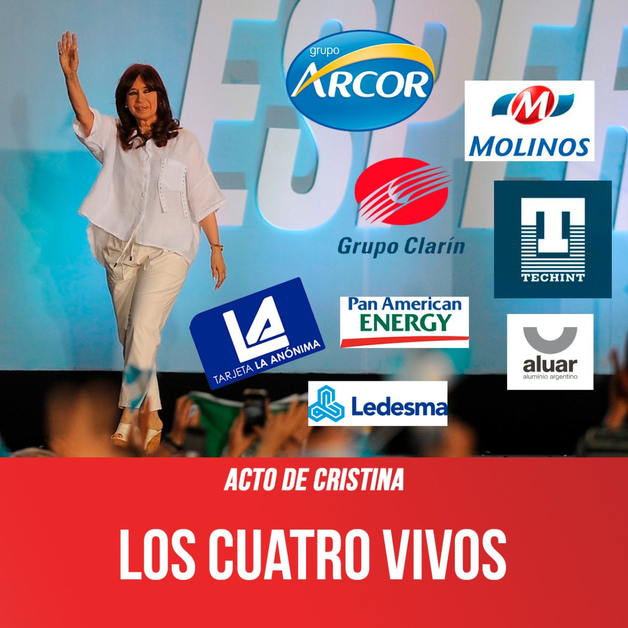 “Al crecimiento no se lo pueden seguir llevando los cuatro vivos de siempre”, dijo Cristina. Pero esos vivos son los que se beneficiaron en sus doce años de gobierno, y ahora.