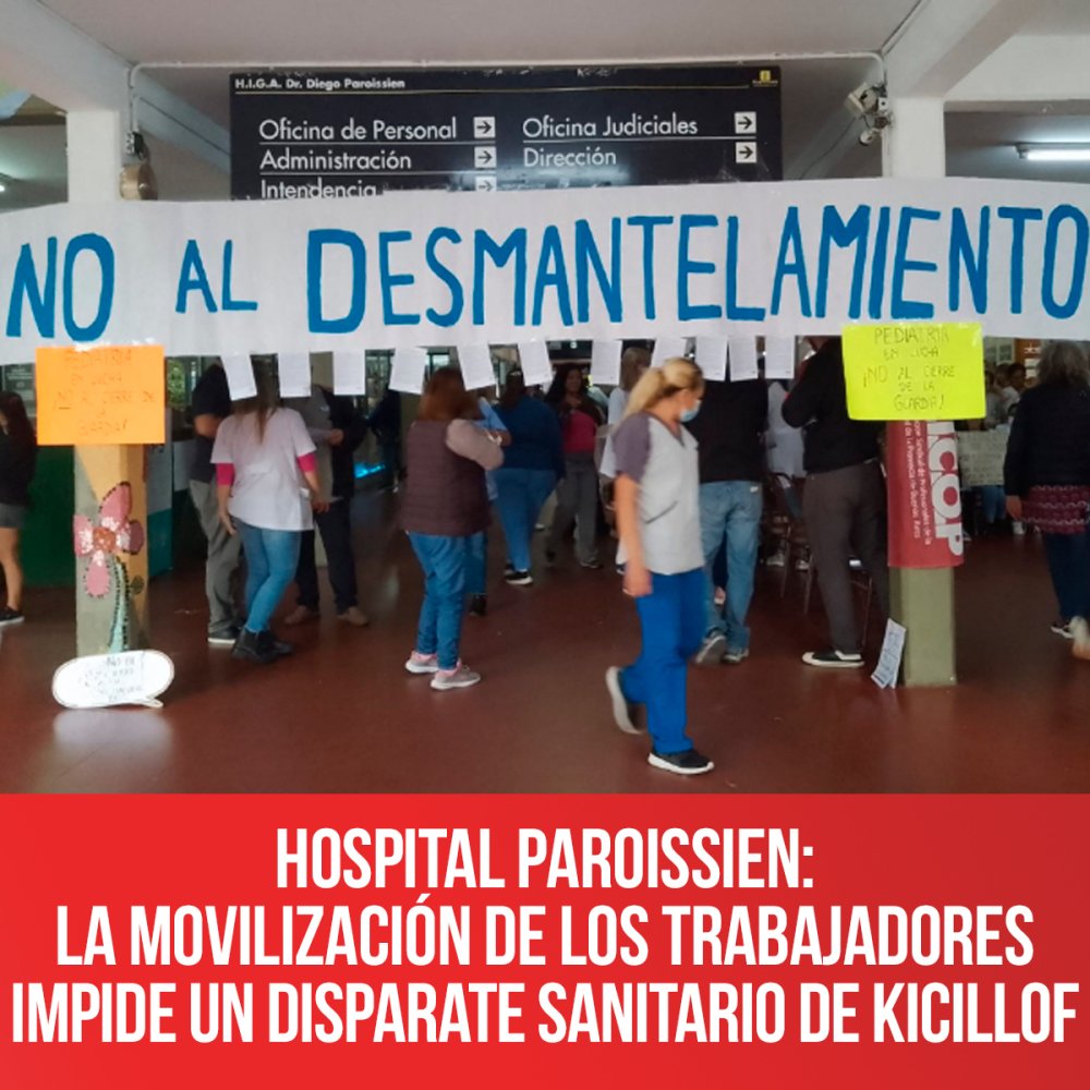 A fines de marzo, el gobierno de Kicillof intentó llevar una parte considerable de los ya escasos pediatras del Hospital Paroissien al Hospital Néstor Kirchner de Laferrere, cuyo plantel nunca se completó. Sin reparar en criterios epidemiológicos ni sanitaristas, imaginaron el desatino de inaugurar un nuevo servicio de pediatría sin nombrar ningún pediatra, dado que el último presupuesto a la baja votado por ellos mismos y los compromisos con el FMI, asumidos por su propio gobierno, se lo impedían. Sin embargo, la voluntad de lucha de las y los trabajadores y la firmeza de la conducción democrática de la seccional Paroissien de Cicop se lo impidieron.