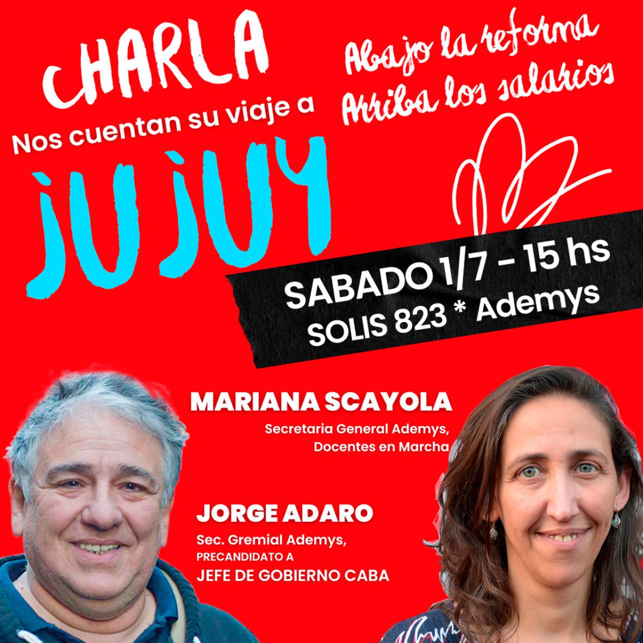 Con Mariana Scayola, secretaria general Ademys-Docentes en Marcha y Jorge Adaro, secretario Gremial Ademys, precandidato a jefe de gobierno CABA Izquierda Socialista / FIT Unidad