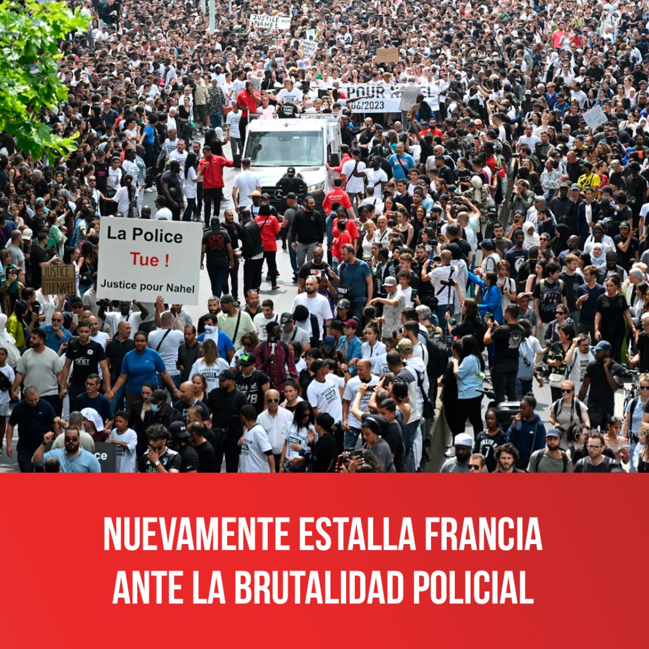 El estallido de indignación, que ya lleva dos semanas, se originó por el asesinato policial del joven Nahel, ocurrido en Nanterre en las afueras de París. Trabajaba de repartidor, le dispararon por no haber acatado una órden policial de detener su automóvil en un control de tránsito. Los días subsiguientes hubo grandes marchas, la primera convocada por la madre de Nahel, ella misma con una pancarta que decía “La policía mata”.