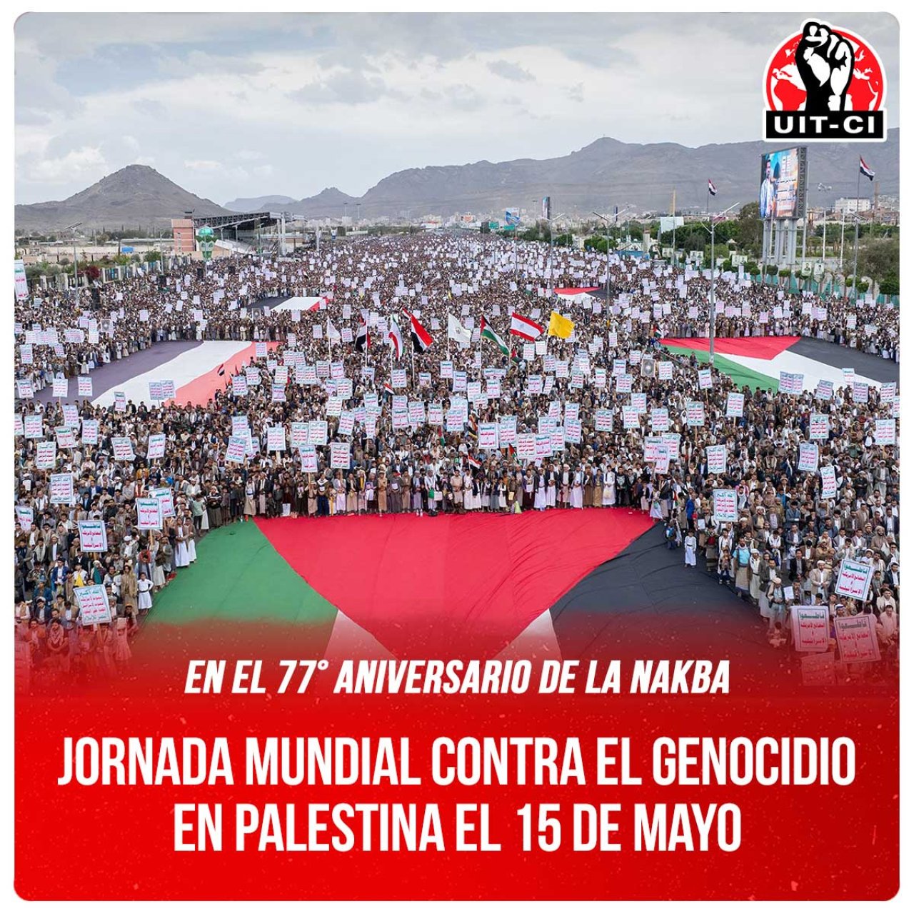 Los sindicatos palestinos convocan a una Jornada Mundial de Acción el 15 de mayo, fecha aniversario 77º de la Nakba: llaman a “intensificar la presión a favor de sanciones inmediatas, legales y específicas contra Israel, incluido un embargo militar total”.