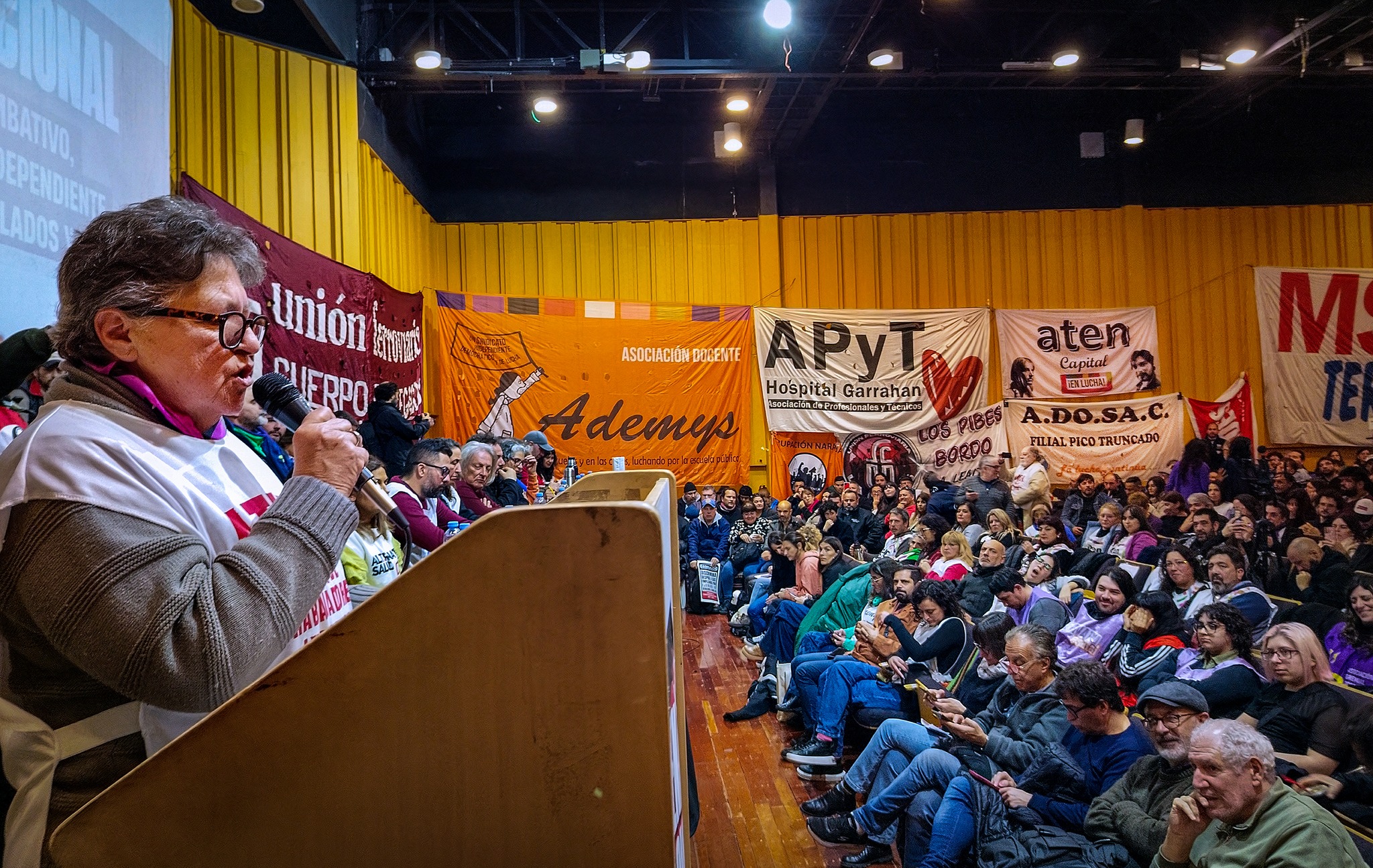 En su intervención propuso: “nombrar como presidencia honorífica del Plenario al pueblo palestino que resiste el genocidio del Estado sionista de Israel”, lo que fue aprobado por aclamaciòn. En otro pasaje de la misma, señaló que venían de hacer una masiva asamblea de más de 1.500 docentes, como siempre realizan, para garantizar la democracia sindical y enfrentar el ajuste.